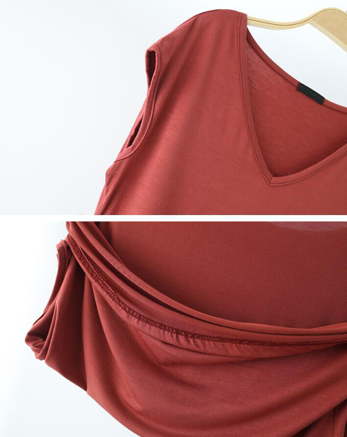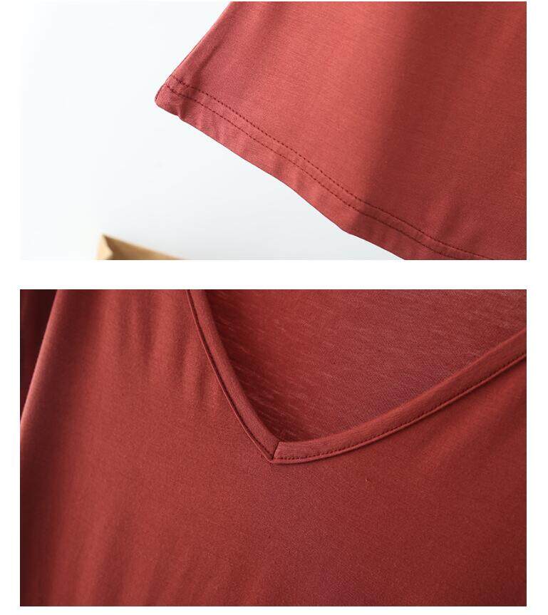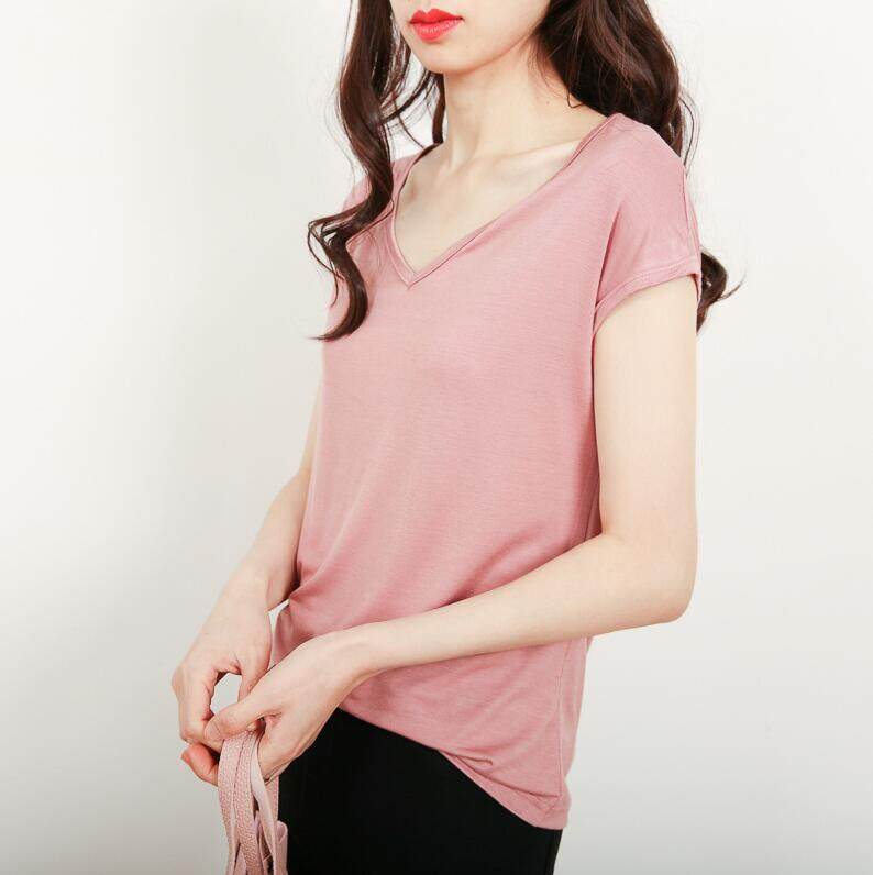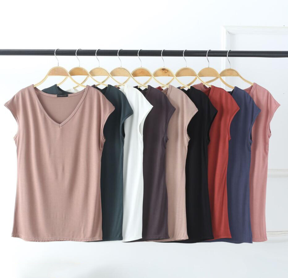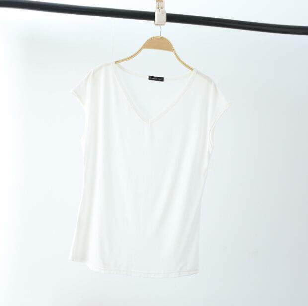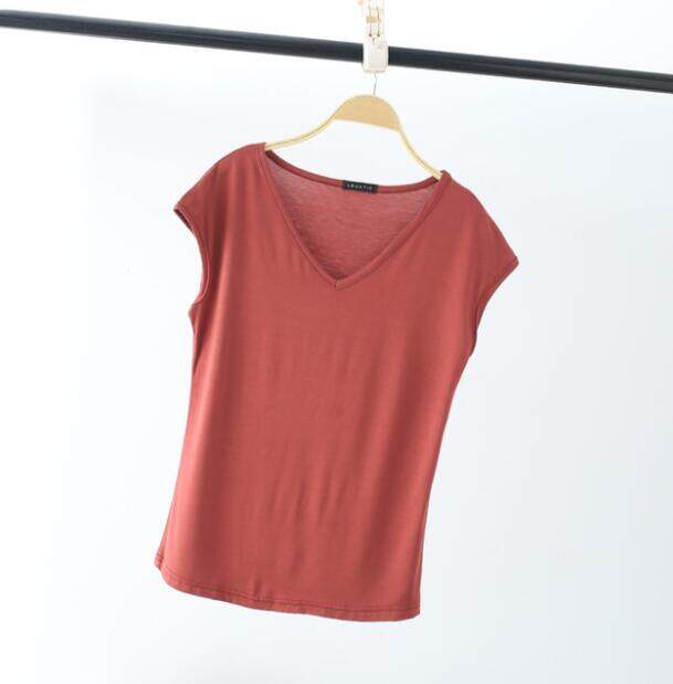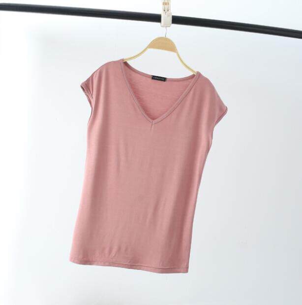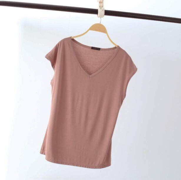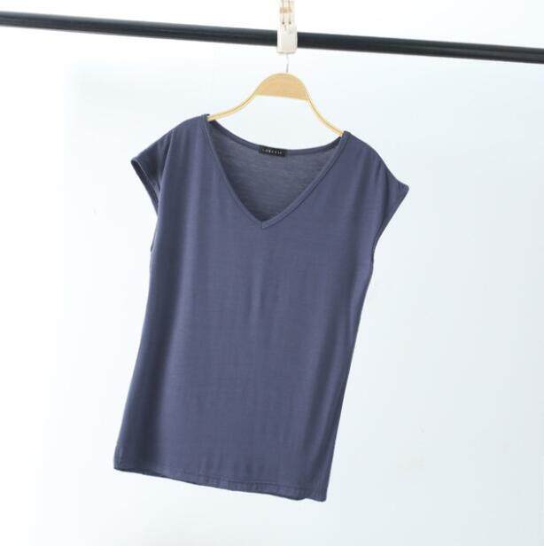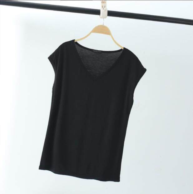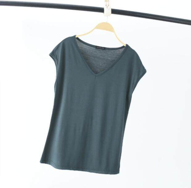 Ruizhijzg Bamboo Fiber T shirts for Women Home Wear Summer Sleeveless Shirt V-neck Top Plain White Pink Modal Cotton Black Dark Blue Green Ladies Slim Tshirt Korean Style