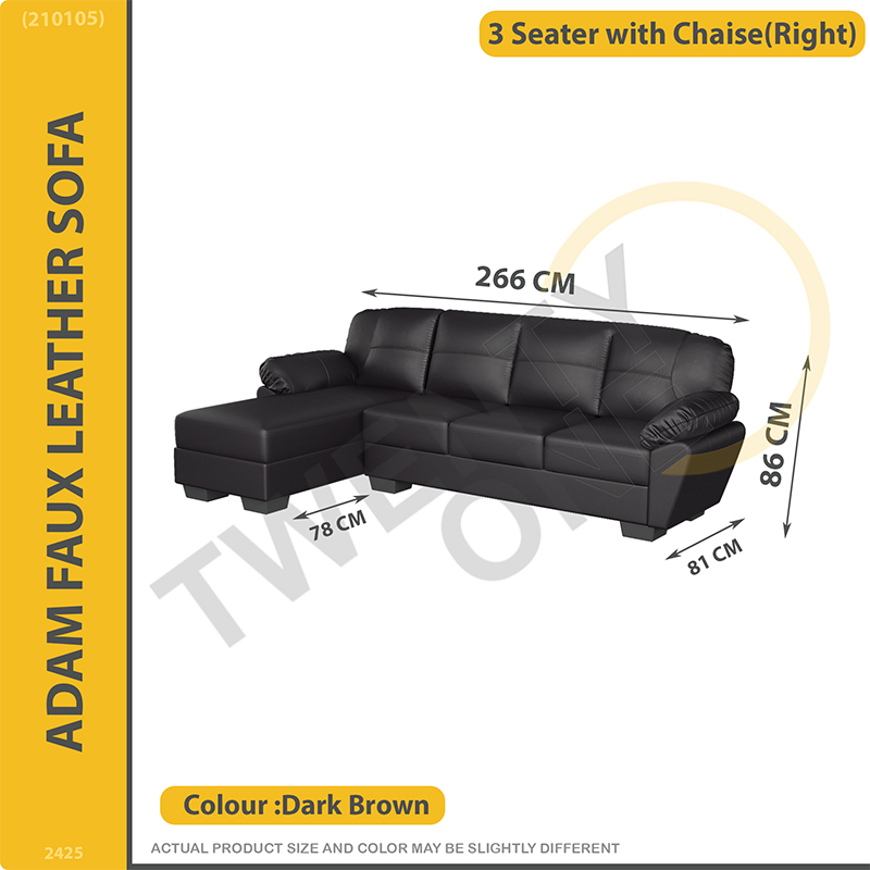 Dark Brown 3 SEATER WITH CHAISE(Right)