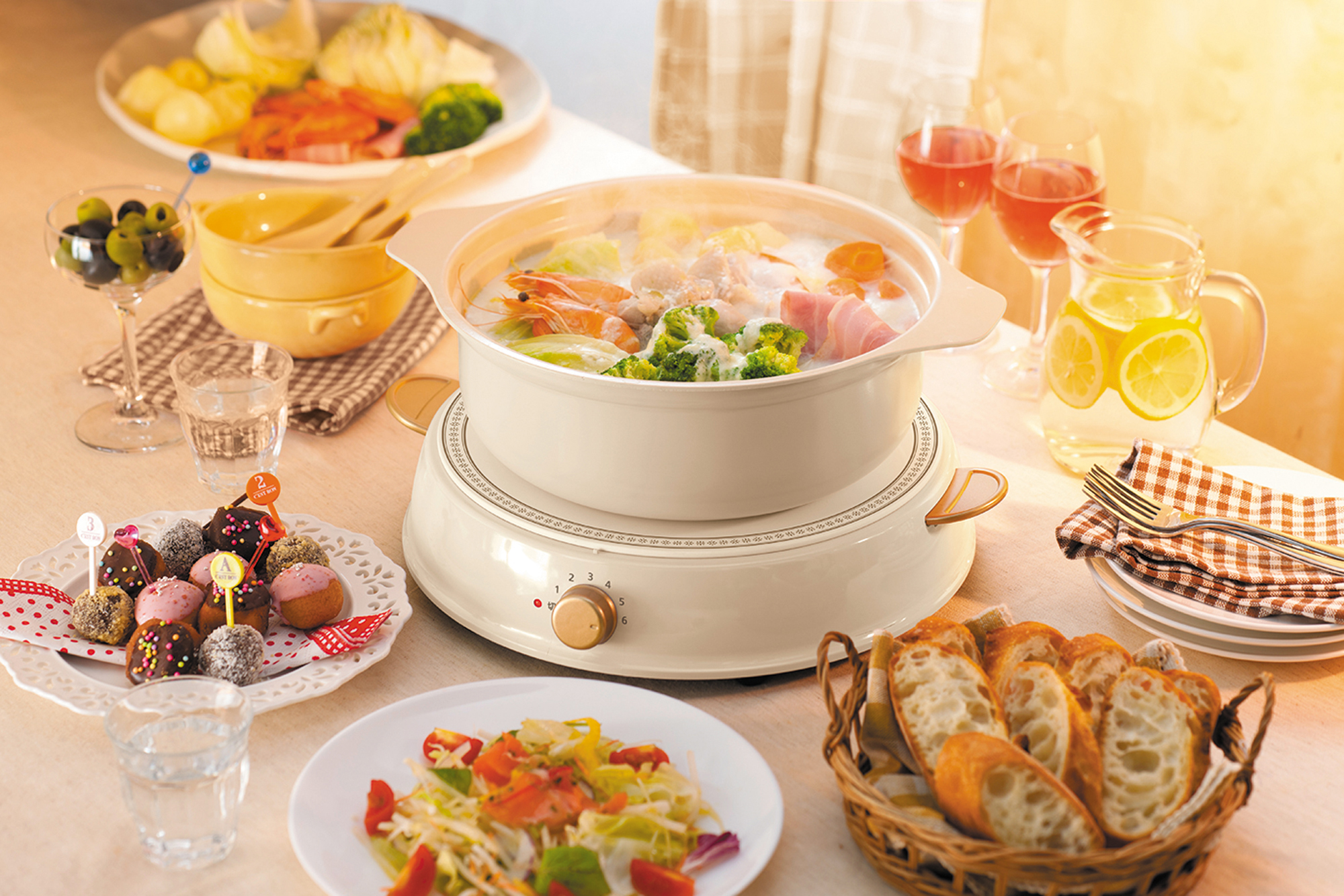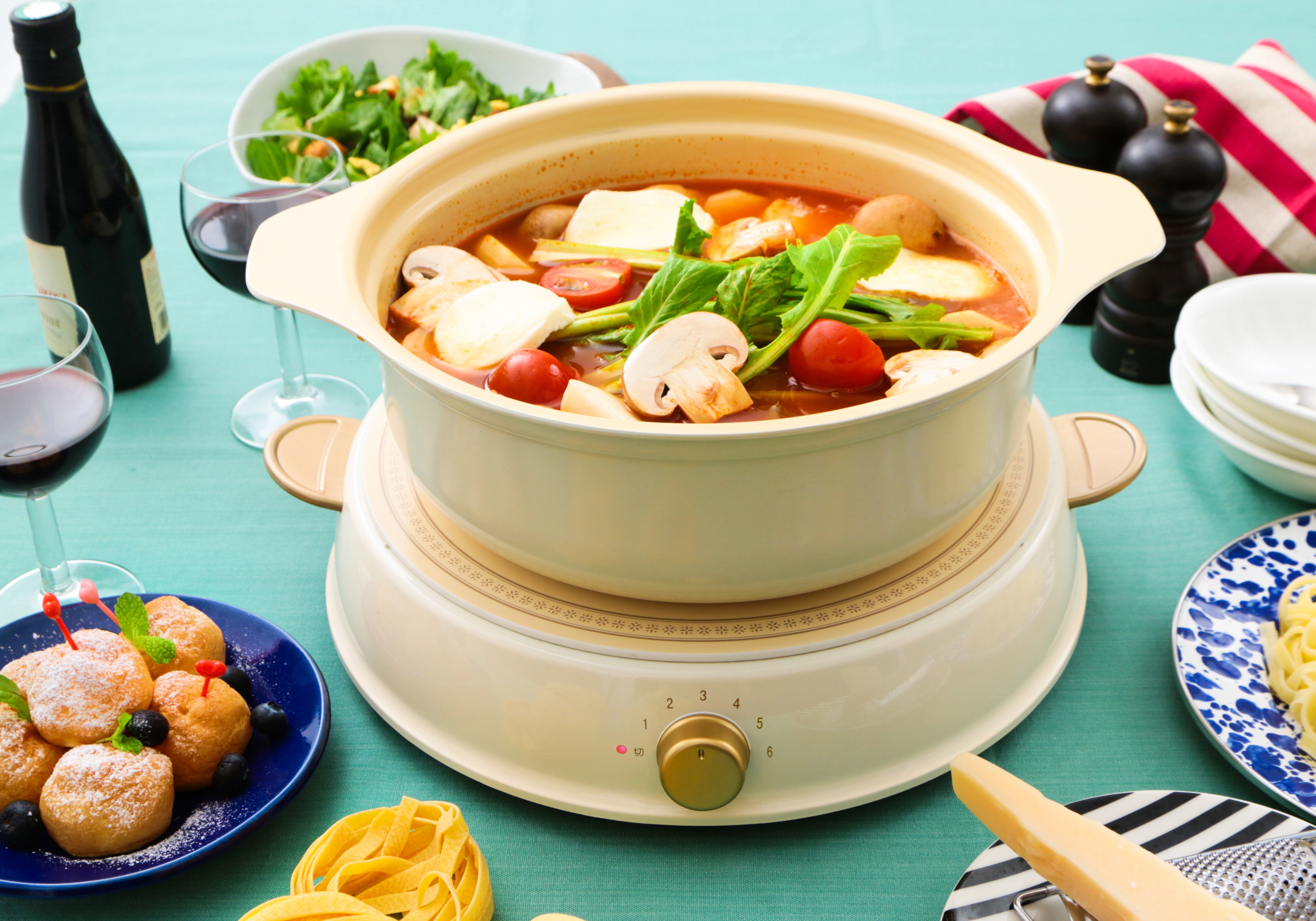 IRIS Ohyama Japan RICOPA Party IH Induction Cooker Ceramic Hot Pot Set, IHL-R14 Beige, IRIS Ohyama Cookware