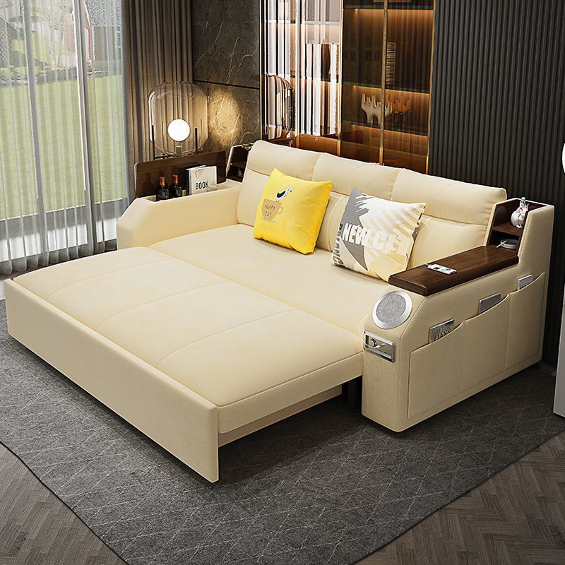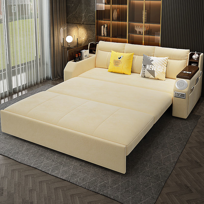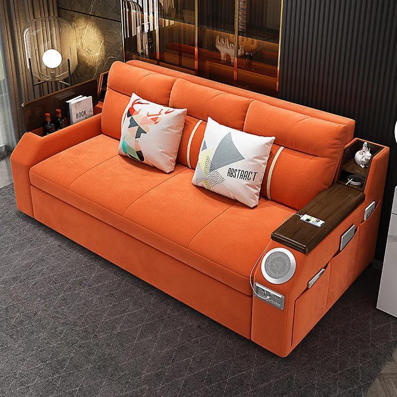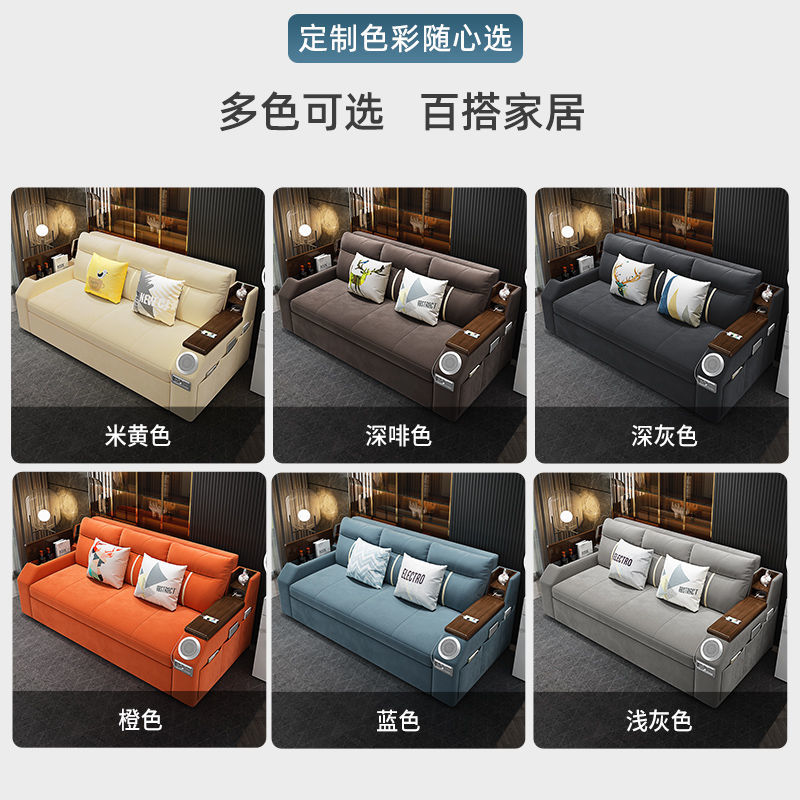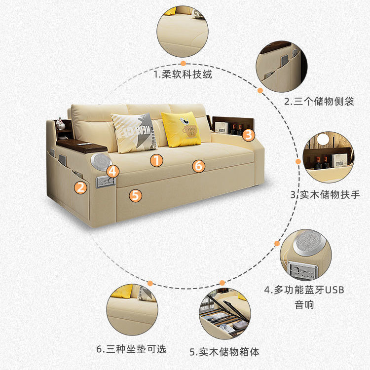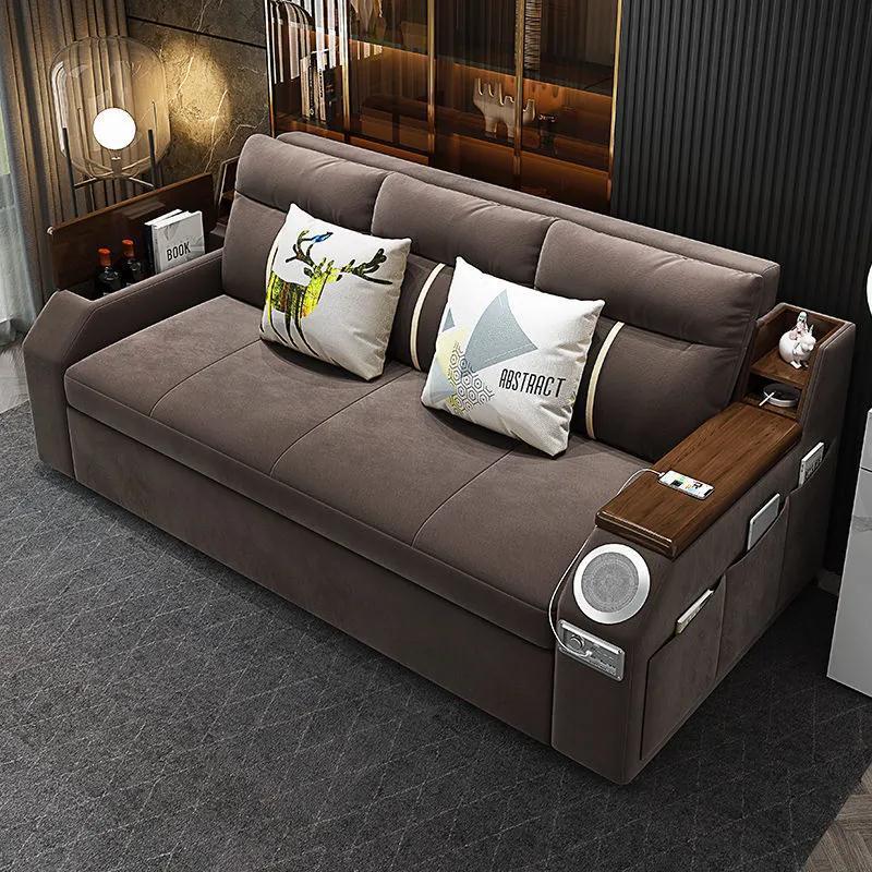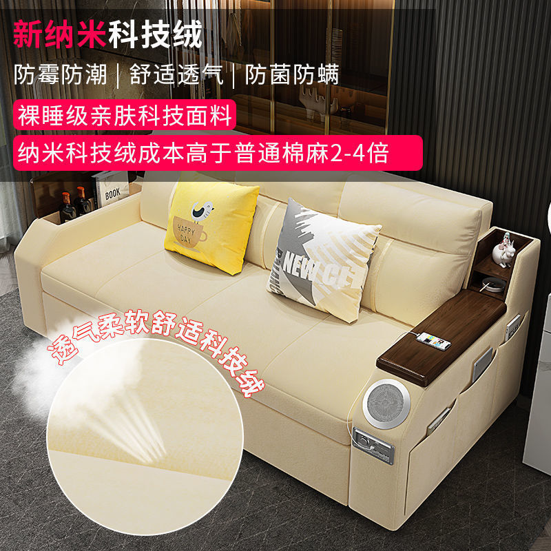 Multifunctional Solid Wood Sofa Bed Foldable Dual-Use Storage Small Apartment Living Room Removable and Washable Single Double Audio Sofa