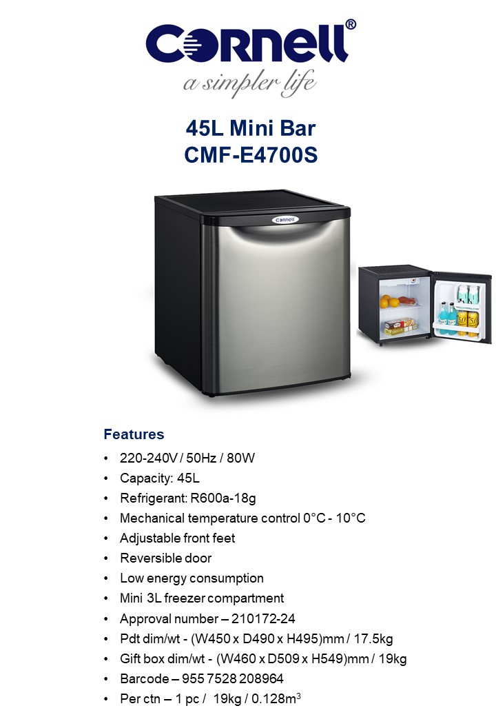 2 in 1 mini refrigerator and 3L freezer compartment combines contemporary style with cutting-edge refrigeration technology.