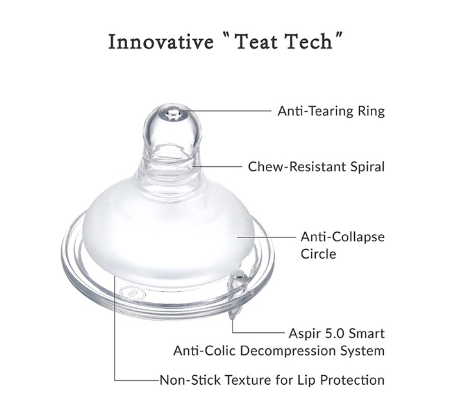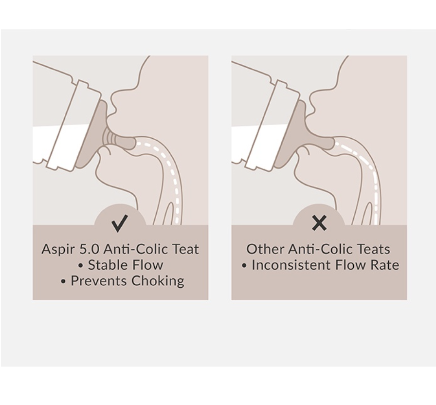 ● Aspir 5.0 Smart Anti-Colic Decompression System - Anti-choking, anti-dripping, anti-colic and easy burping.