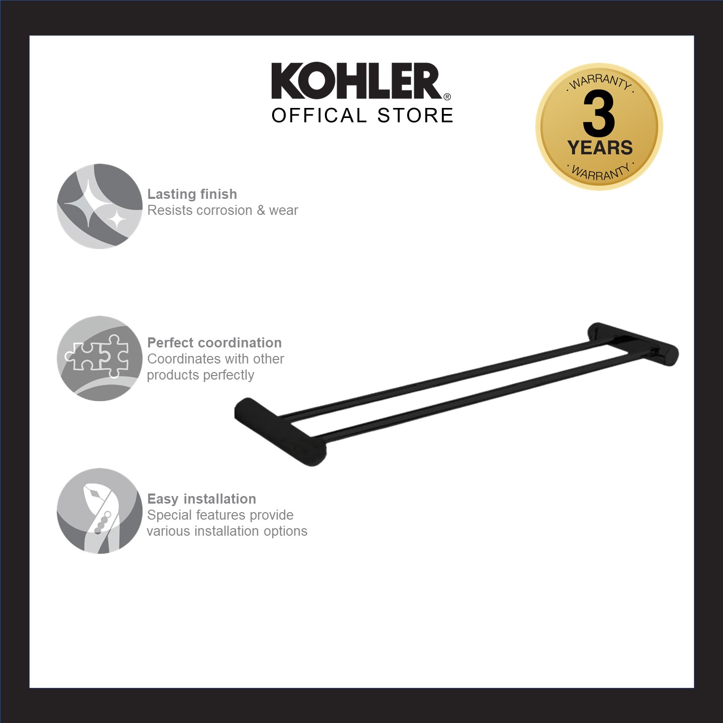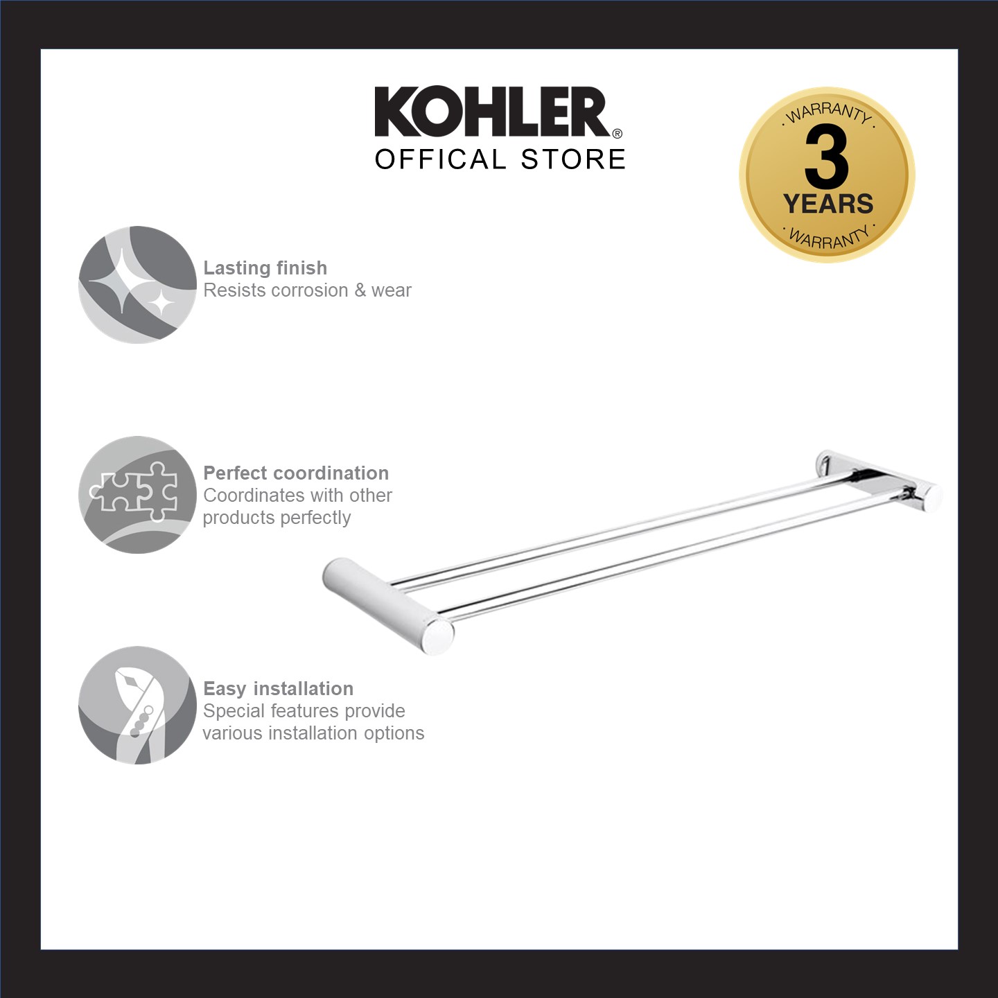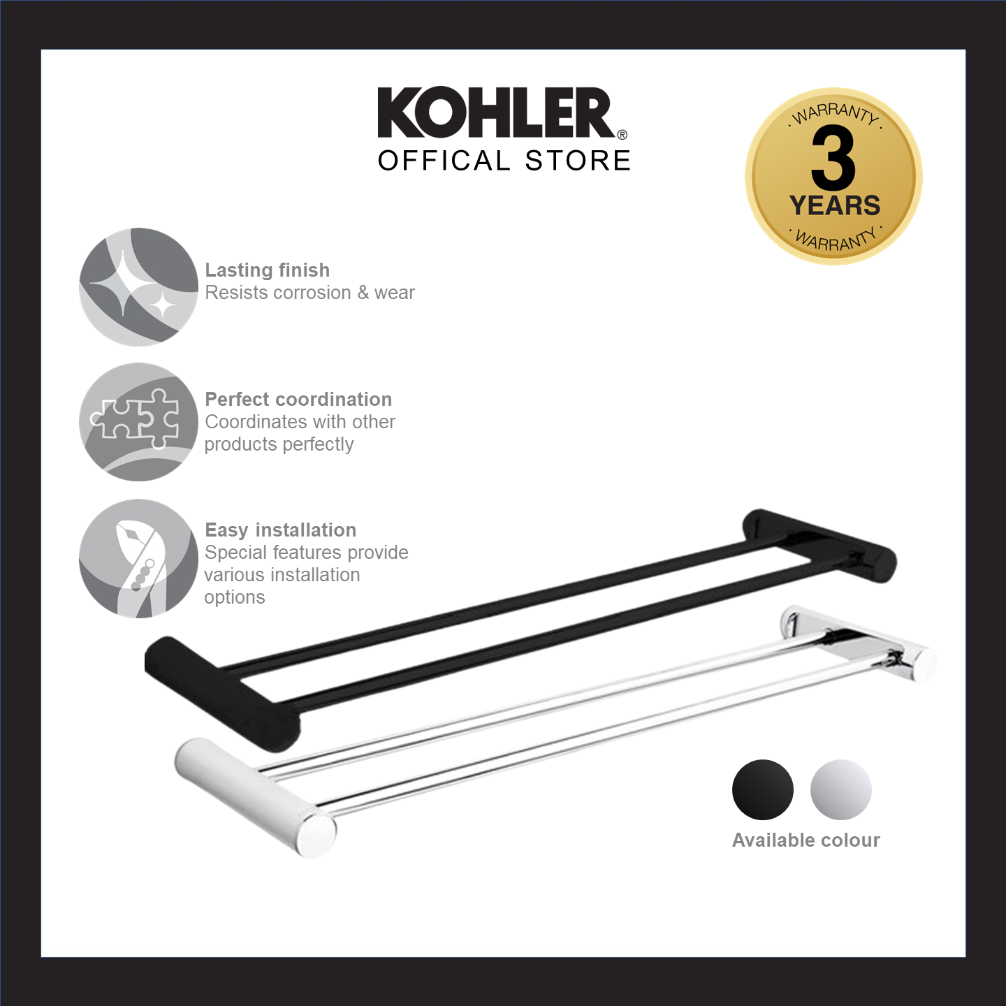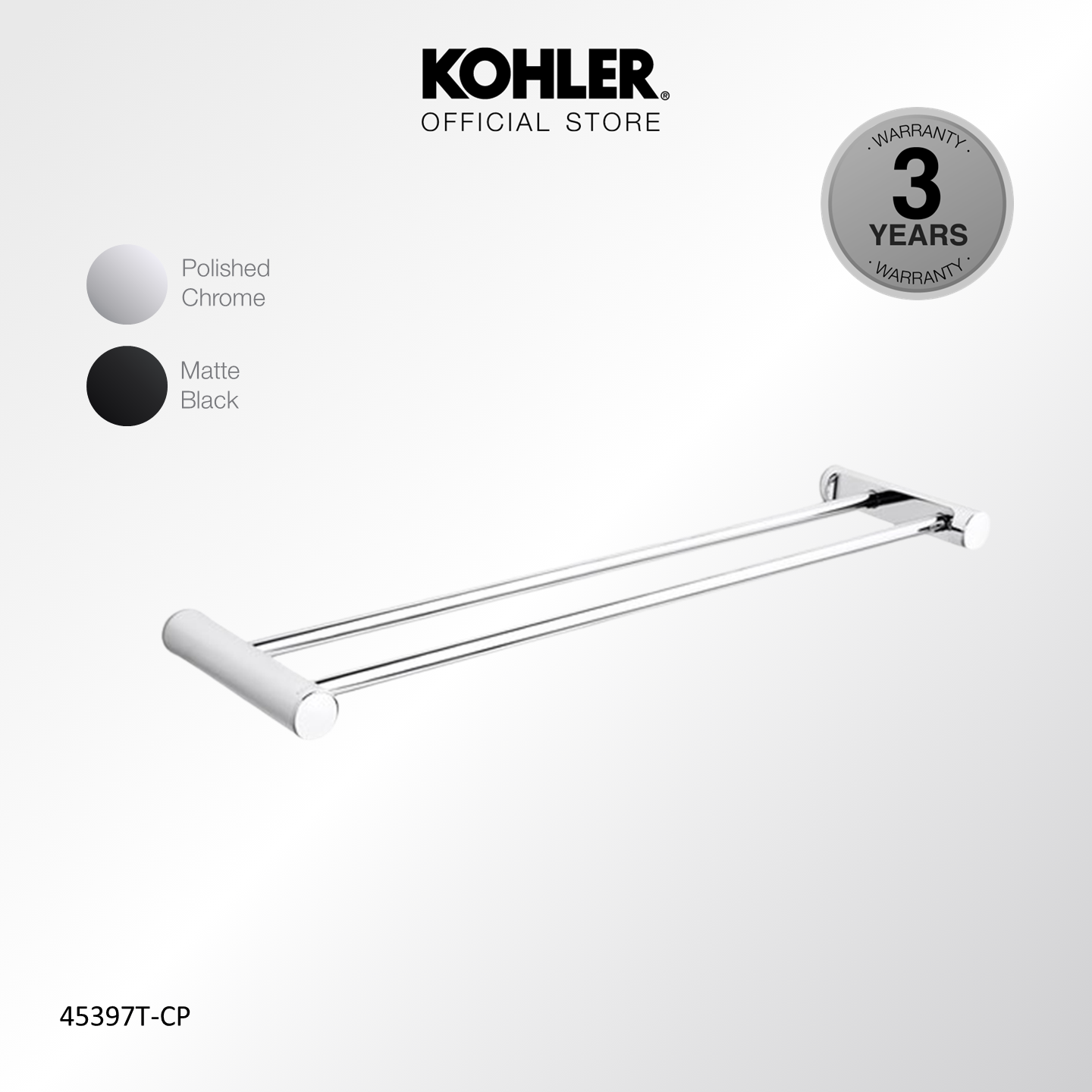 KOHLER 24" July Double Towel Bar Polished Chrome K-45397T-CP/ Matt Black K-45397T-BL