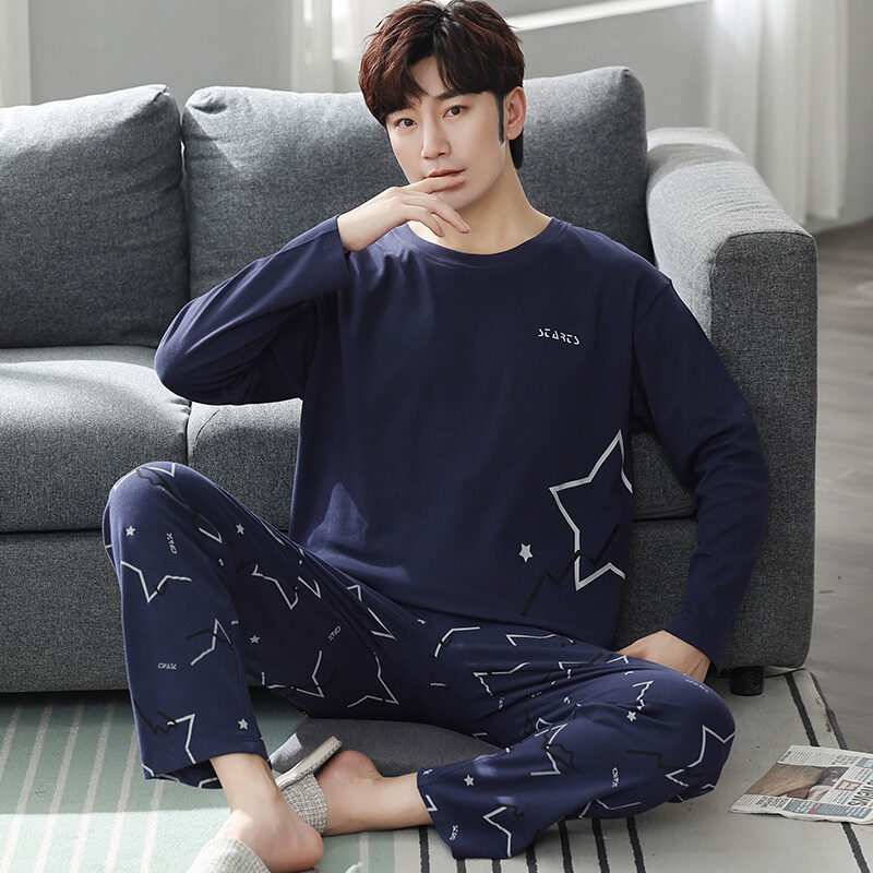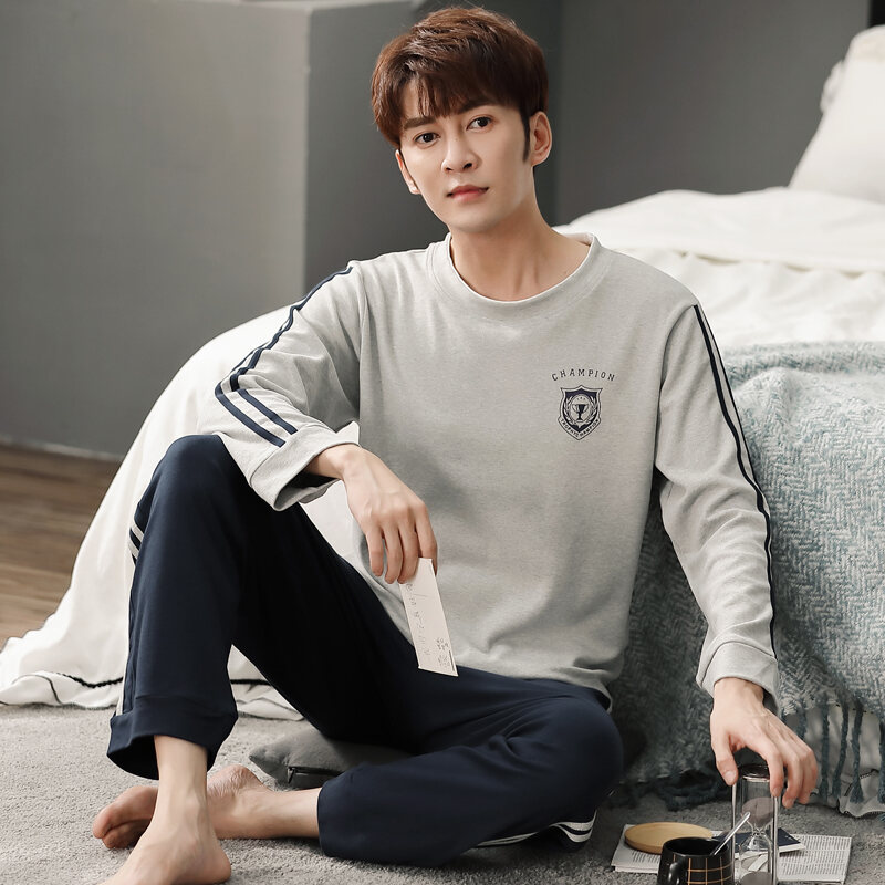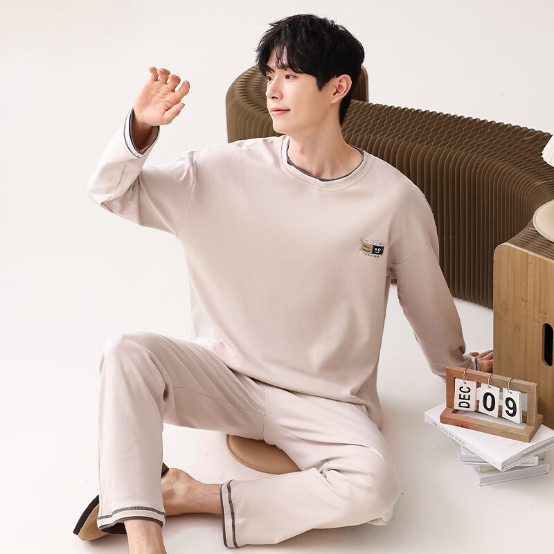 Nanjiren Men's Pajamas Spring and Autumn Pure Cotton Long Sleeve Suit Autumn Winter Youth Cotton Homewear Men's Outerwear