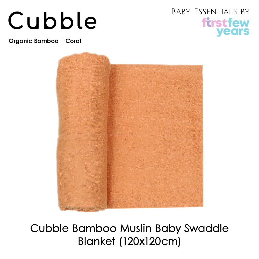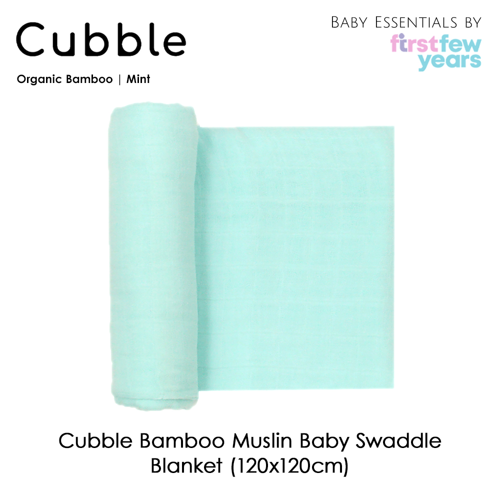 Cubble Bamboo Muslin Baby Swaddle Blanket (120x120cm) | Multiple Colors