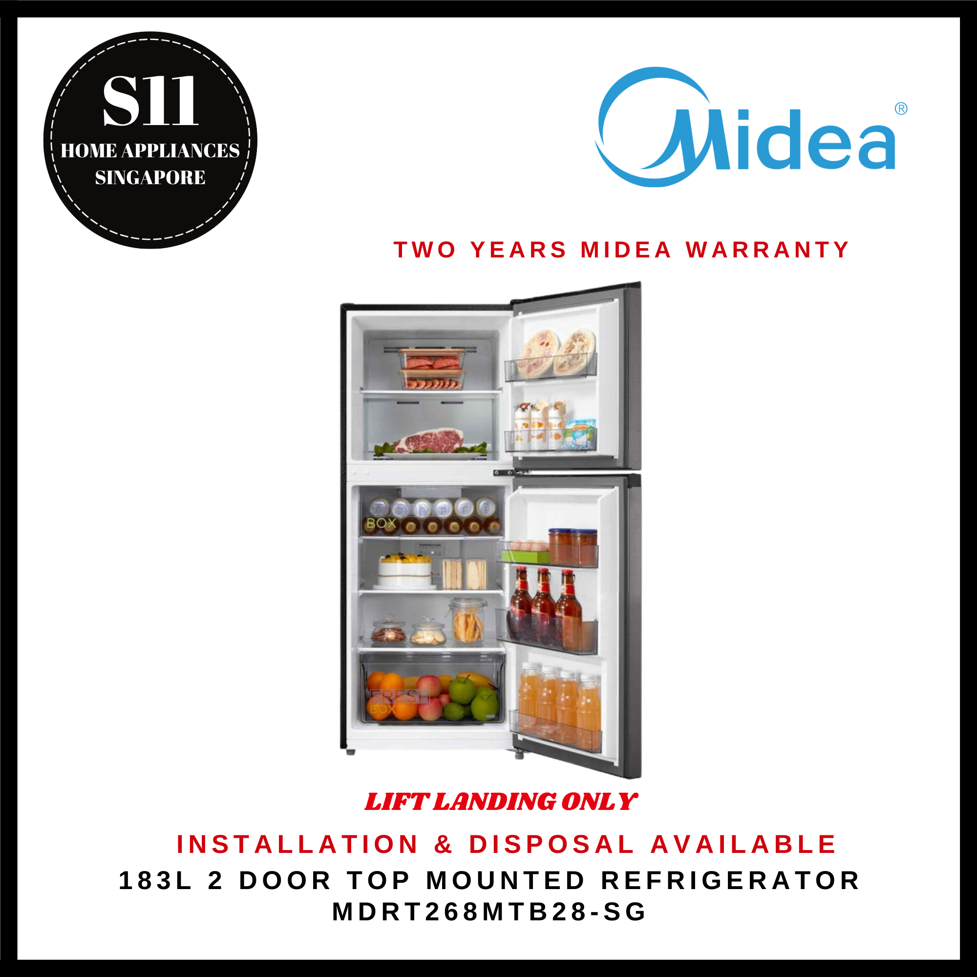 MIDEA MDRT268MTB28-SG 183L TOP MOUNTED REFRIGERATOR (INVERTER QUATTRO) - 2 YEARS MANUFACTURER WARRANTY [READY STOCK & DELIVER WITHIN 3 DAYS]