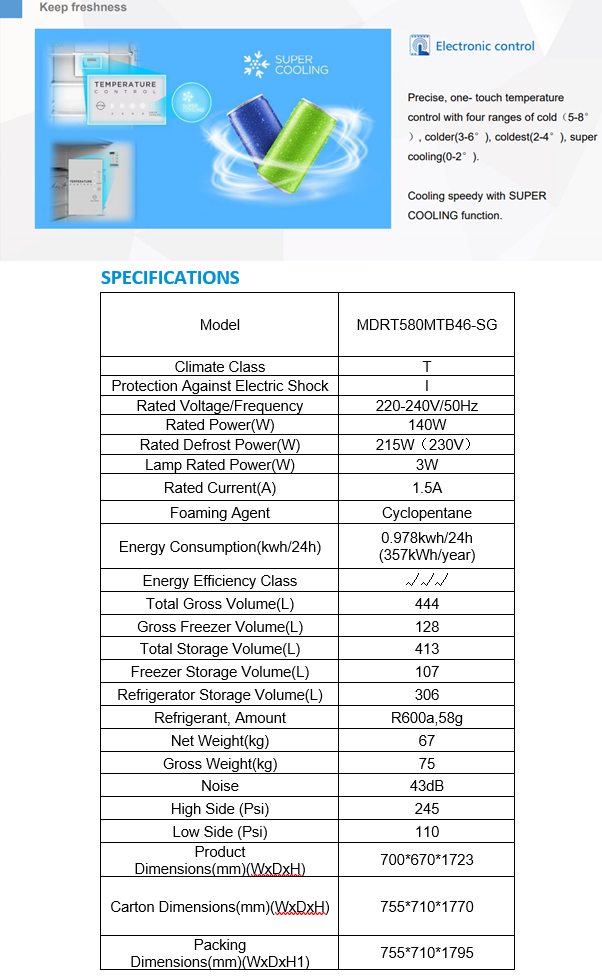 MIDEA MDRT580MTB46-SG 413L SILVER TOP FREEZER REFRIGERATOR