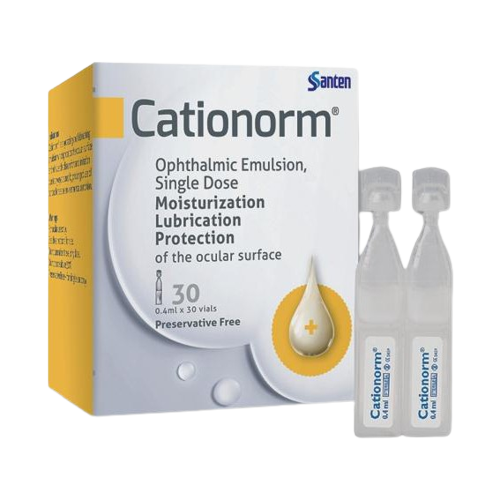 Cationorm® is an emulsion formed by an aqueous phase and an oily phase. The main components of oily phase are mineral oils.