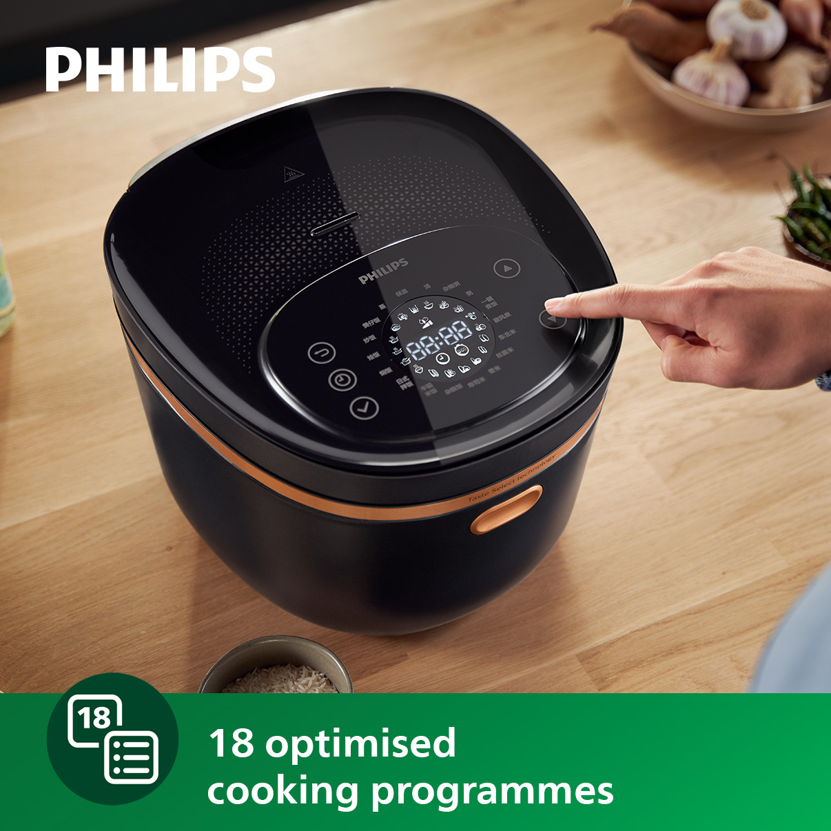 PHILIPS Digital Rice Cooker 5000 Series 1.5L - HD4539/62, 18 programmes, 8-layer maifanshi coating, LED Display