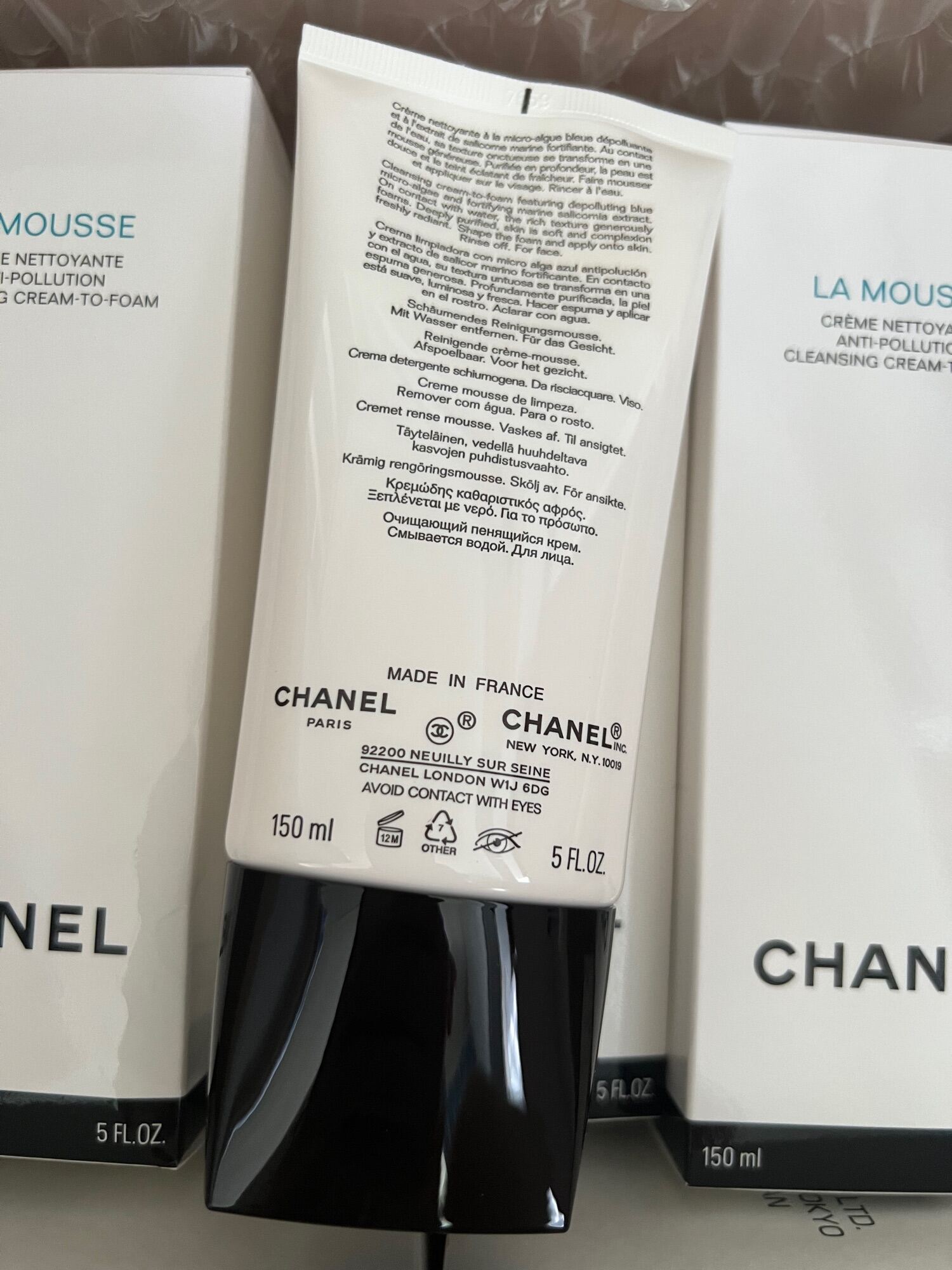3. Packaging: Chanel products are known for their elegant and luxurious packaging. The cleansing cream-to-foam may be packaged in a sleek container with the iconic Chanel branding.