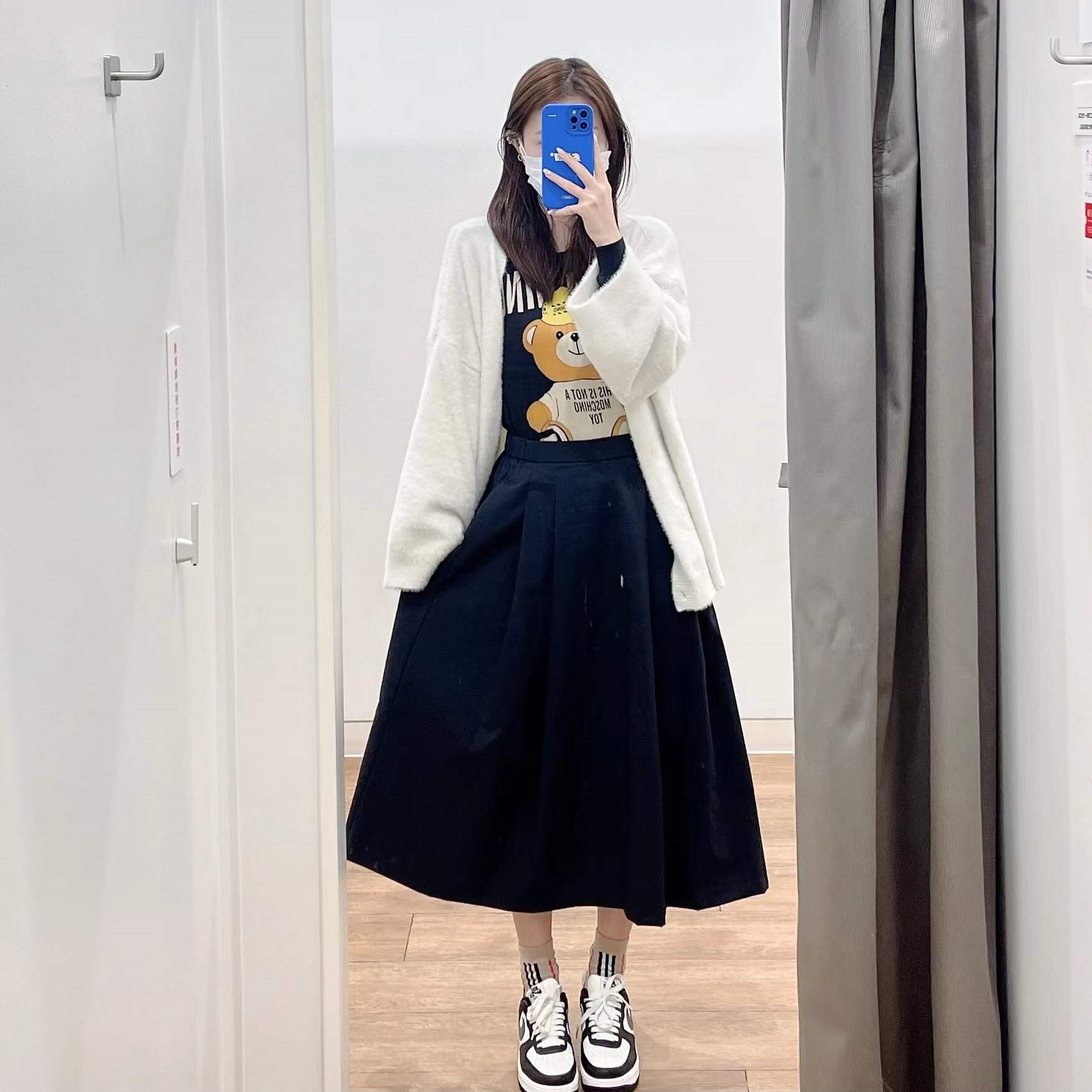 100.00kg Chubby Girl Summer K-style Women's Mid Length Long Length A- line Skirt Elastic Waist One Breasted Pocket plus Size Skirt