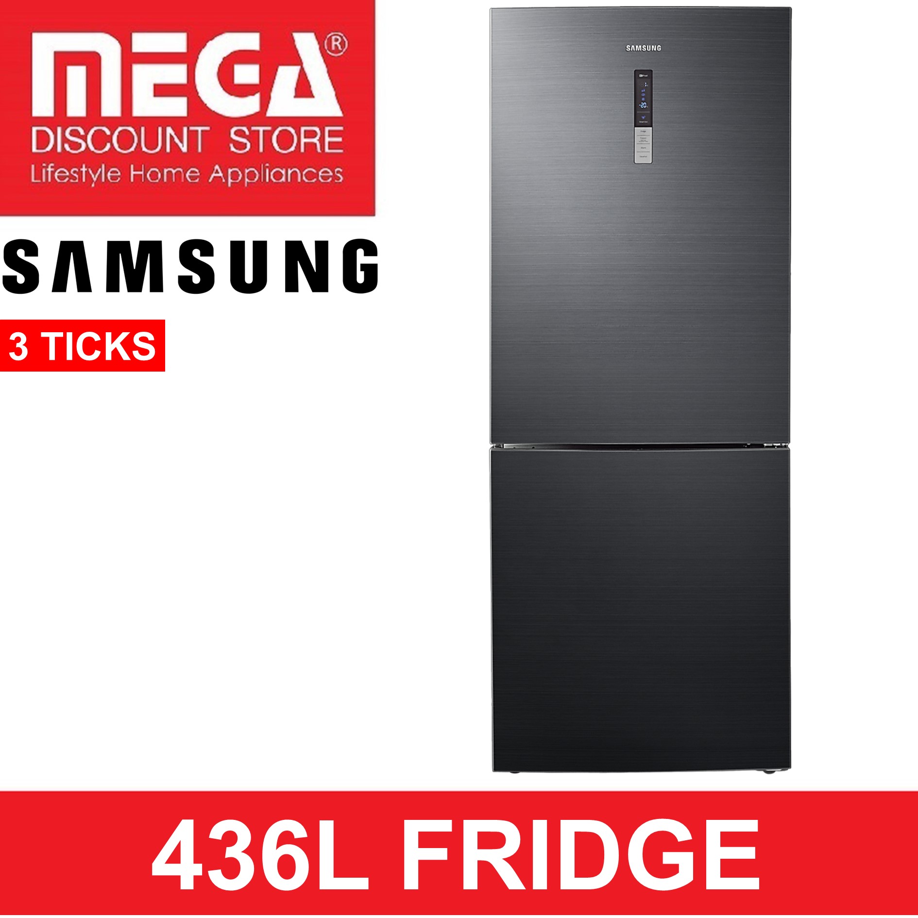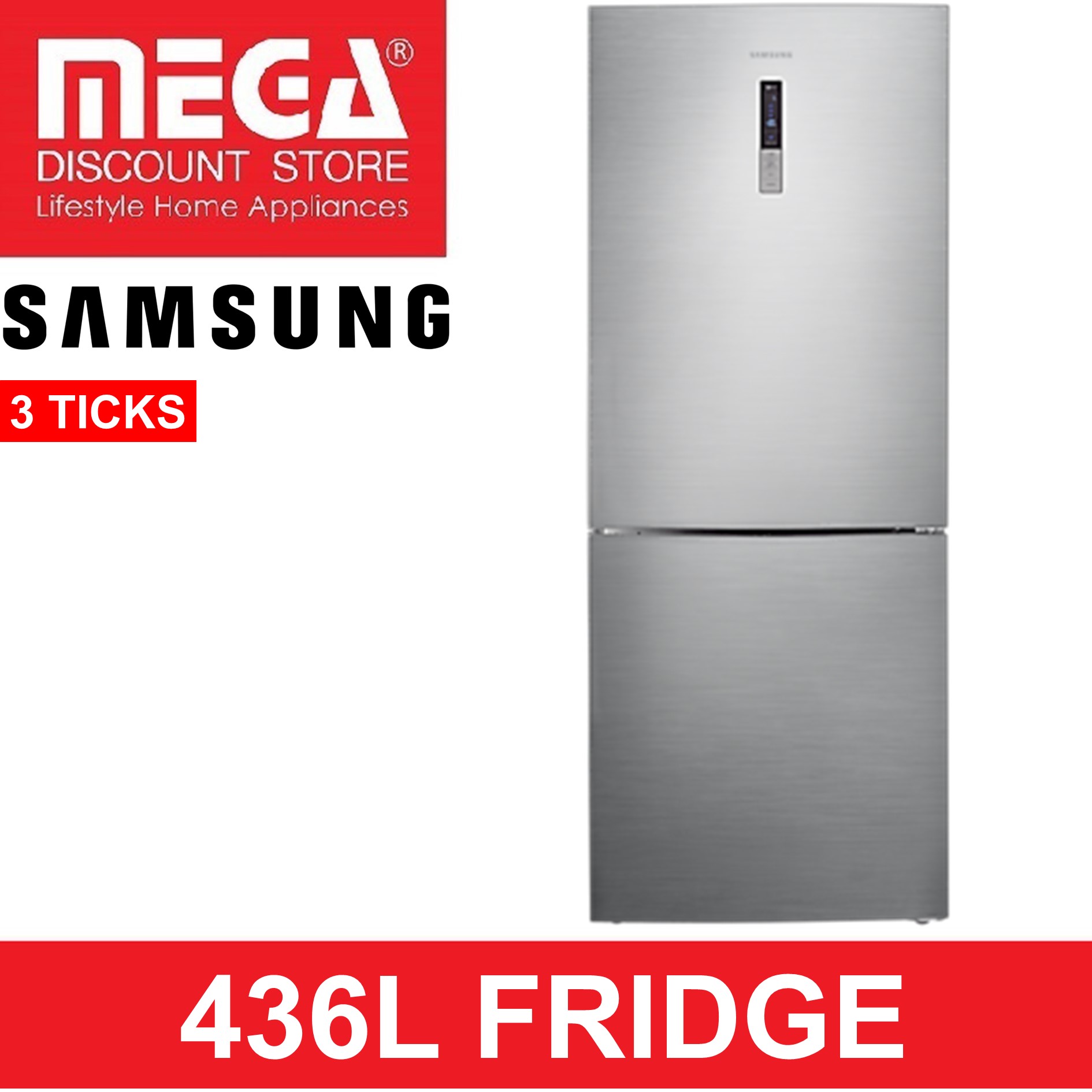 SAMSUNG RL4354RBABS/SS | RL4354RBAS8/SS 436L 2-DOOR FRIDGE (3 TICKS)