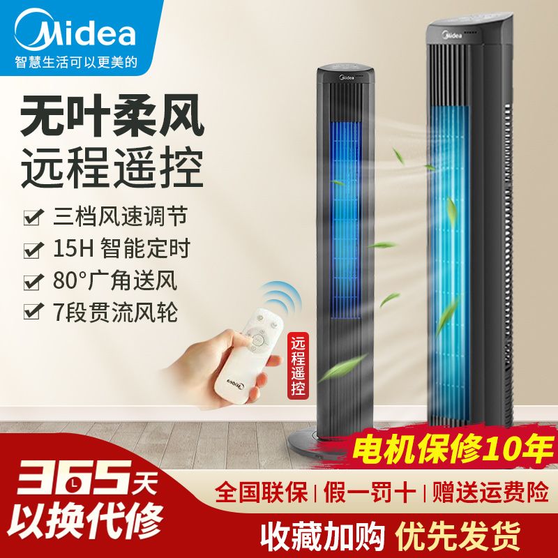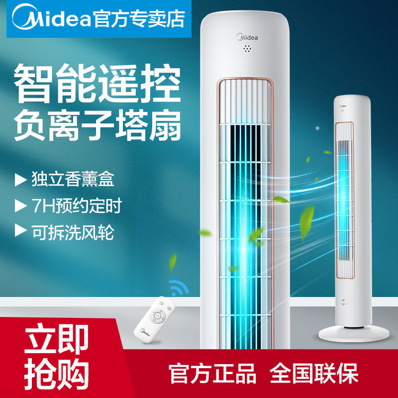 Midea Electric Fan Household Tower Fan Floor Fan Remote Control Fan Shaking Head Anion Bladeless Fan
