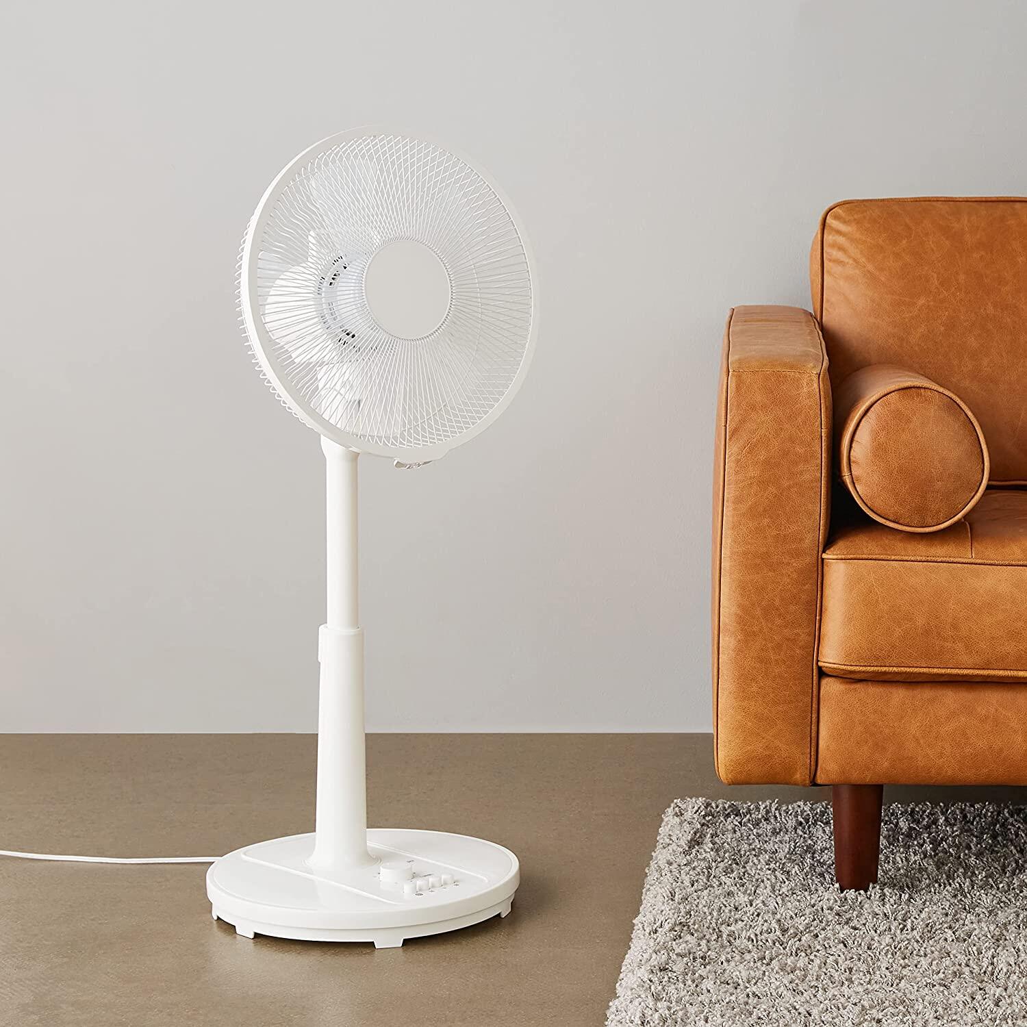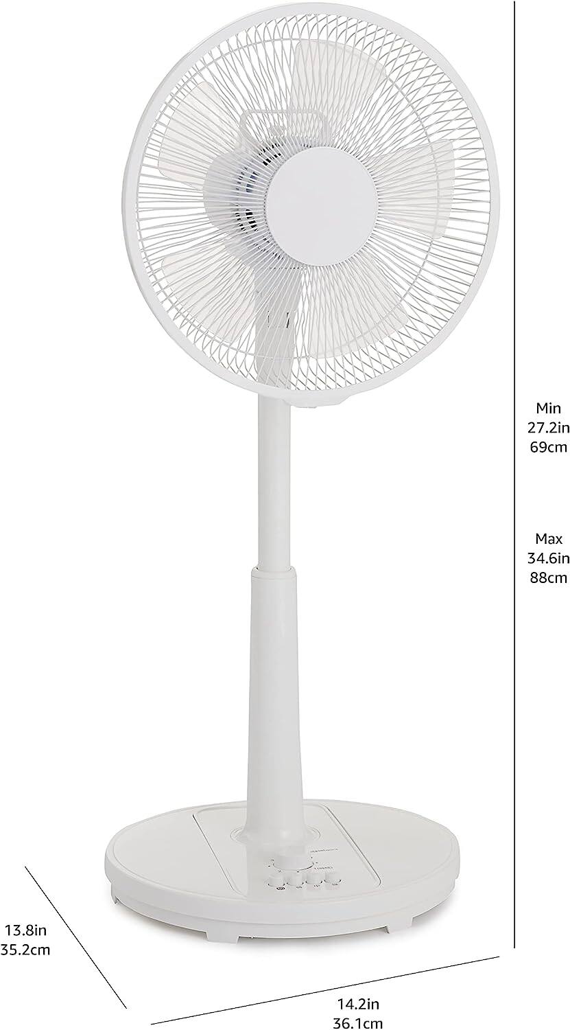 Amazon Basic Living Fan, Oscillating, with Timer Function, 3 Levels of Air Flow Adjustment, White