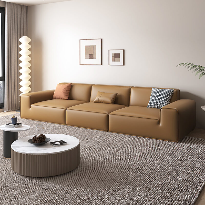 Baxter Big Black Cow Black Tofu Block Leather Sofa Italian Minimalist Accessible Luxury Small Apartment Minimalist Modern Sofa