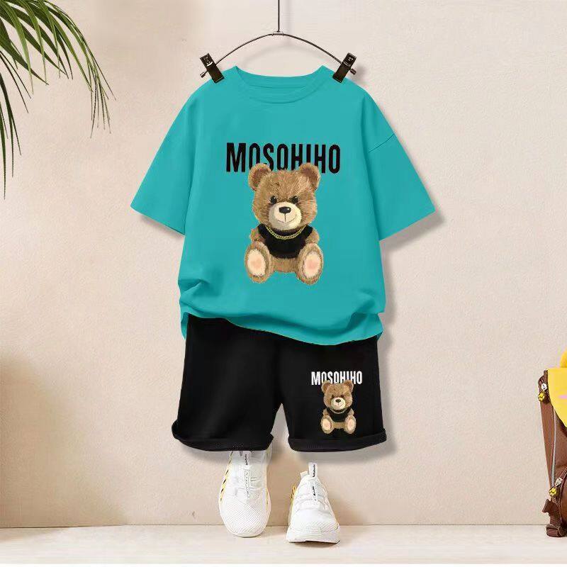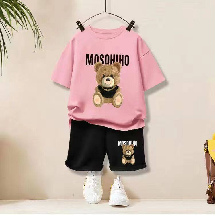 2pcs Ins Fashion Baby Suit Baby Clothes Boys Girls Summer Two-piece Bear Cartoon Printed Top + Shorts