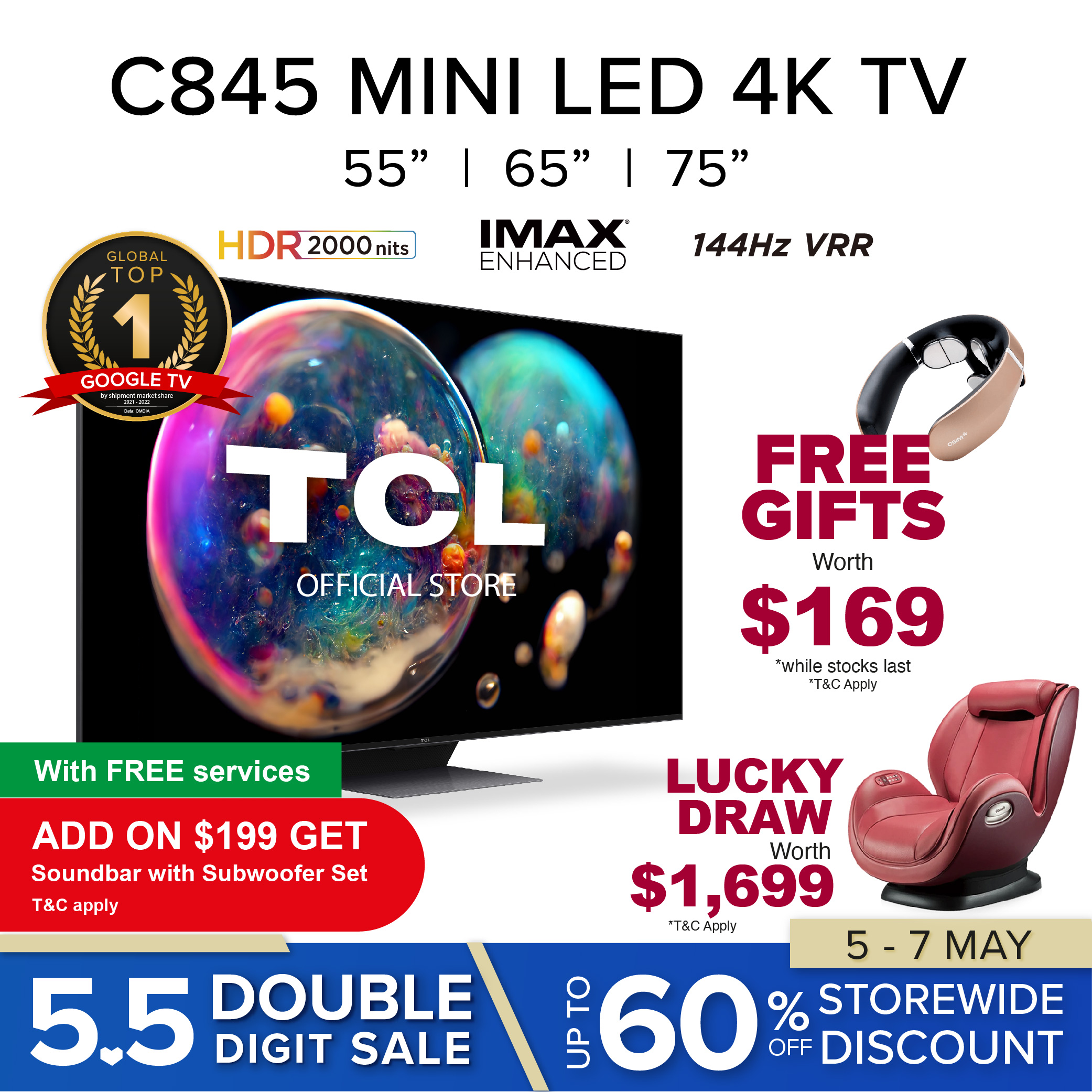 Free OSIM Unek Pilse Tens Neck Massager (worth 169)with every confirmed order of QLED C7 and Mini LED C8, C9 X955 series