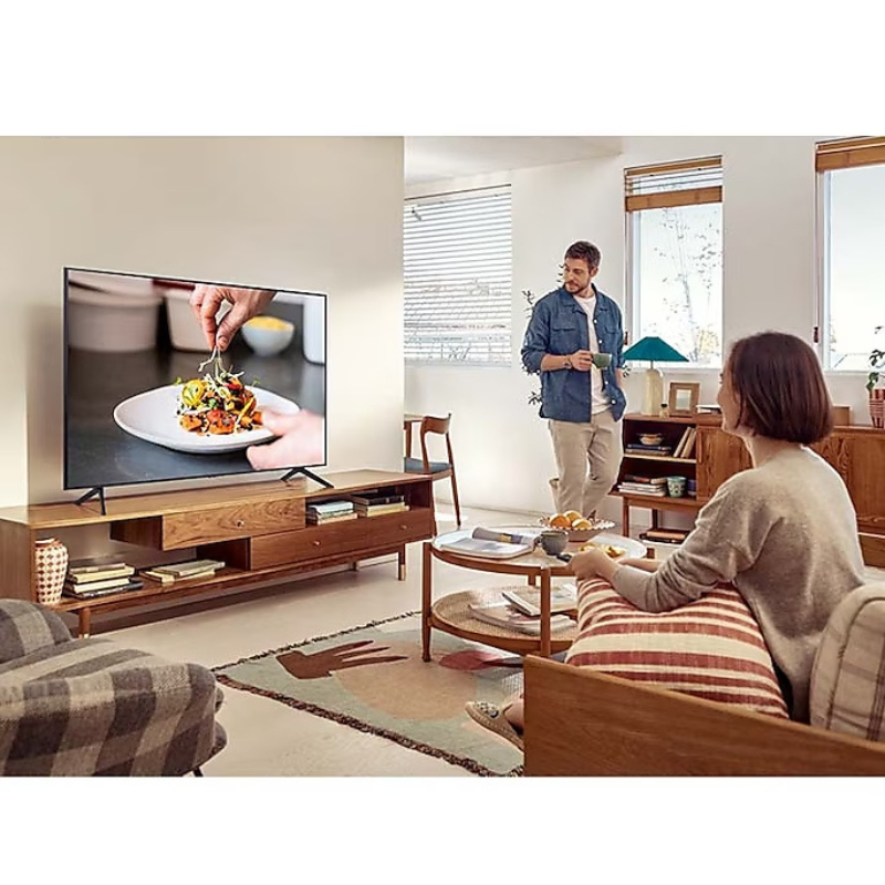 Specifications Product Type : LED Series : 7 Display Screen Size : 50" Resolution : 3,840 x 2,160 Screen Curvature : N/A Video Picture Engine : Crystal Processor 4K Adaptive Picture : N/A PQI (Picture Quality Index) : 000 AI Streaming : N/A AI Upscale : N/A HDR (High Dynamic Range) : HDR HDR 10+ : Support HLG (Hybrid Log Gamma) : Yes Contrast : Mega Contrast Viewing Angle : N/A Colour : Pur Color Brightness/Colour Detection : Brightness Detection Micro Dimming : UHD Dimming Auto Depth Enhancer : N/A Contrast Enhancer : Yes Auto Motion Plus : Yes Film Mode : Yes Natural Mode Support : Yes Filmmaker Mode (FMM) : Yes Audio Dolby Digital Plus : Yes Dolby 5.1 Decoder : N/A Active Voice Amplifier : N/A Adaptive Sound : Adaptive Sound Object Tracking Sound : N/A Q-Symphony : Q-Symphony Audio Pre-selection Descriptor : N/A Hole Array Speaker : N/A Sound Output (RMS) c: 20W Speaker Type : 2CH Woofer : N/A Multiroom Link : Yes Bluetooth Audio : Yes Smart Service Samsung SMART TV : Smart Operating System : Tizen Dimension Package Size (WxHxD) : 1264 x 780 x 150 mm Set Size with Stand (WxHxD) : 1116.8 x 719.1 x 250.2 mm Set Size without Stand (WxHxD) : 1116.8 x 644.2 x 59.9 mm Stand (Basic) (WxD) : 1009.8 x 250.2 mm Stand (Minimum) (WxD) : N/A Weight Package Weight : 16 kg Set Weight with Stand : 11.6 kg Set Weight without Stand : 11.4 kg