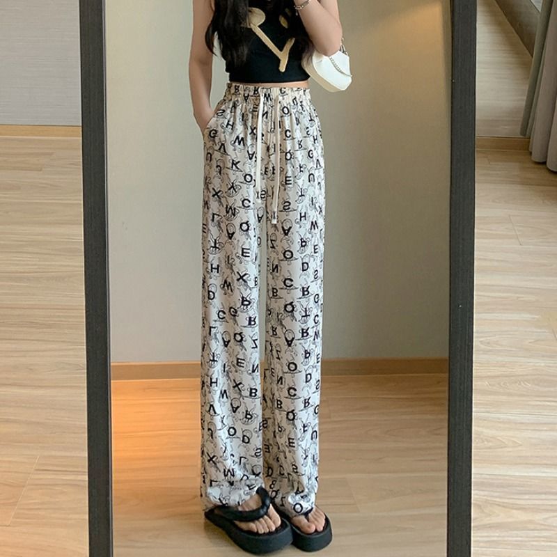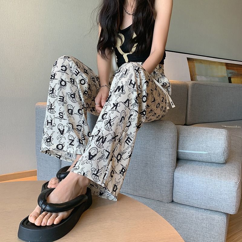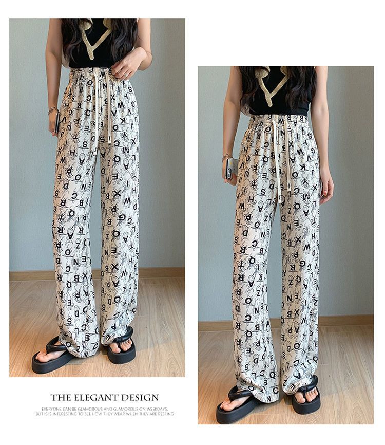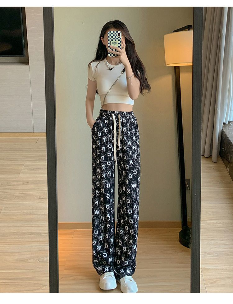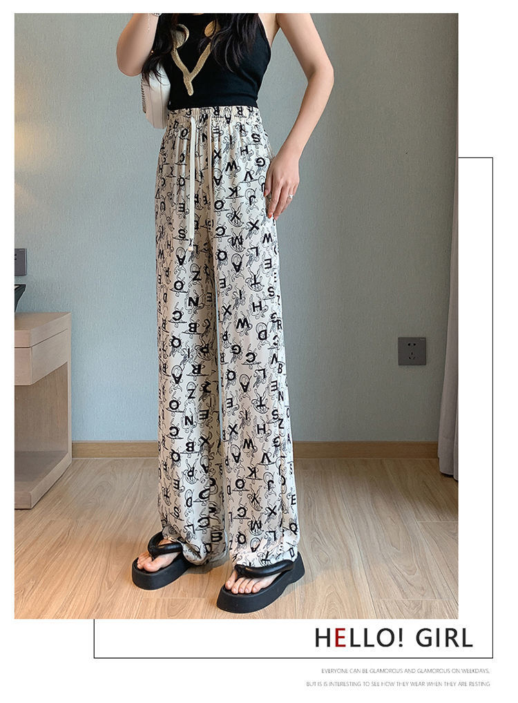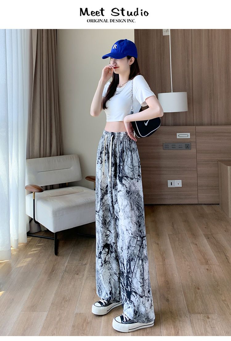 Women's Ice Silk Chiffon Wide-leg Pants Women's Thin Section Loose Thin Large Size Small People Leisure Straight Sports Pants