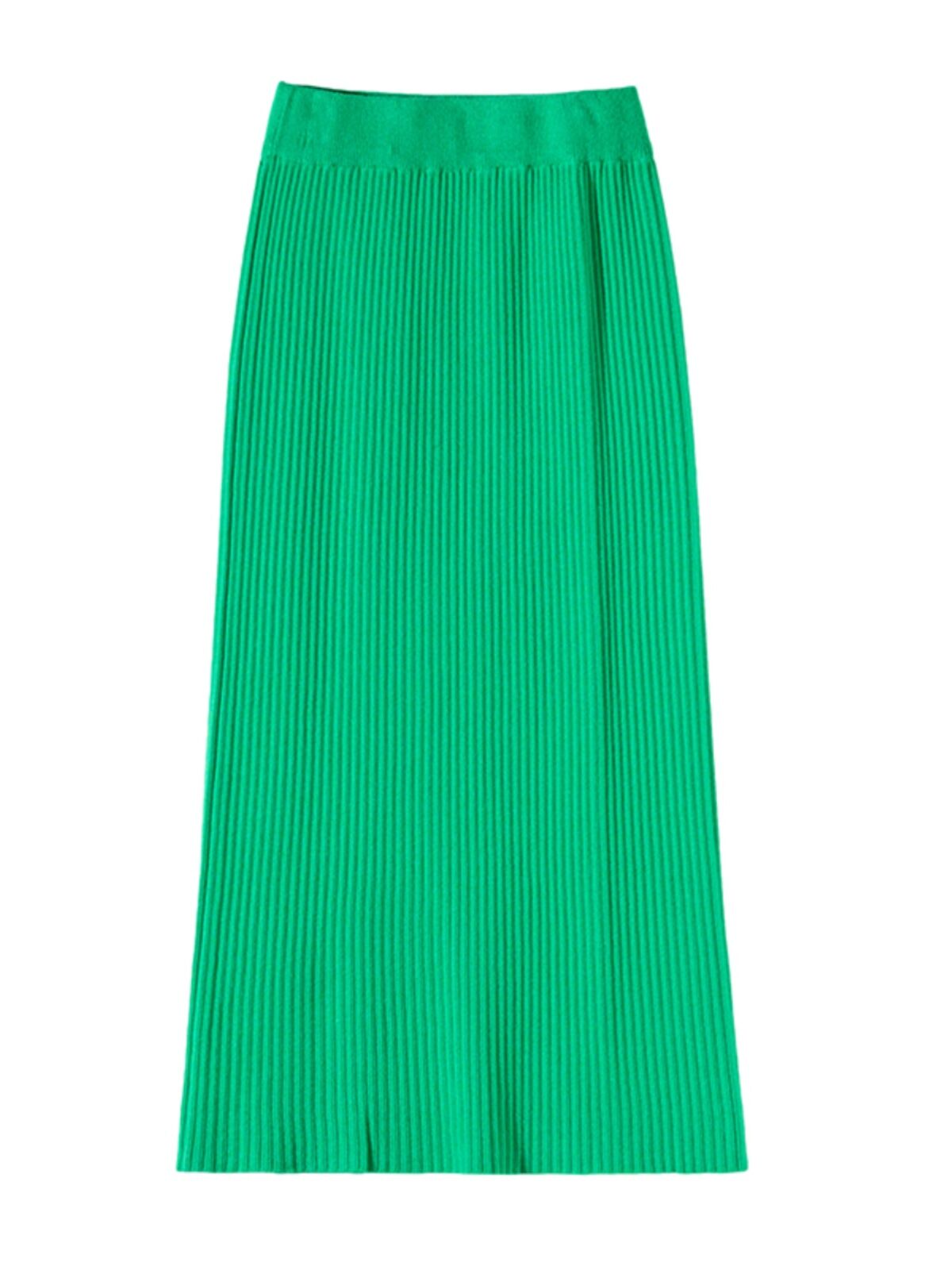 Candy Color Knitted Straight Sunken Stripe Mid Length Long Length Skirt