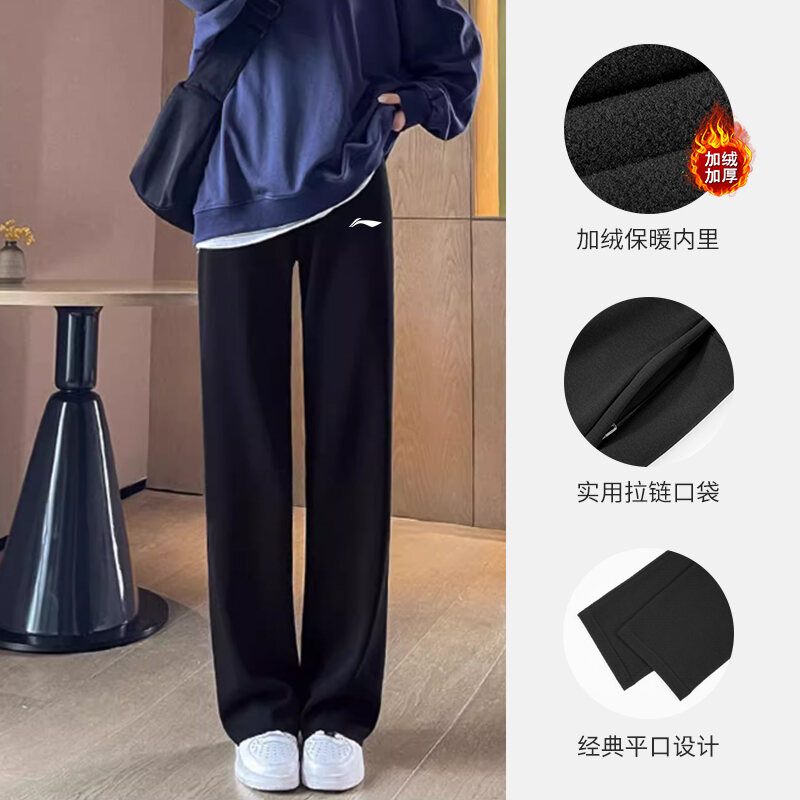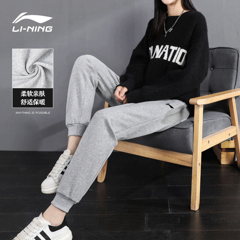Li Ning Sports Pants Spring & Fall Sweatpants Women Fleece-lined Thicken Ankle-Tied Gray Trousers Women Autumn and Winter Loose Casual