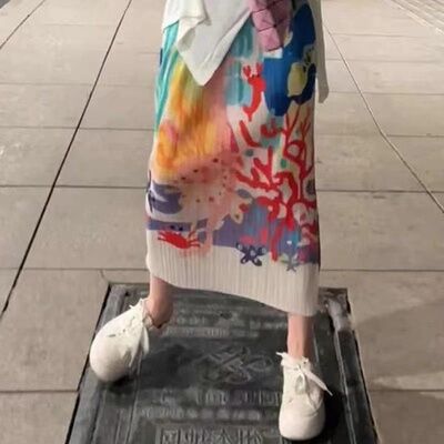 100.00kg Chubby Girl Summer K-style Women's Mid Length Long Length A- line Skirt Elastic Waist One Breasted Pocket plus Size Skirt