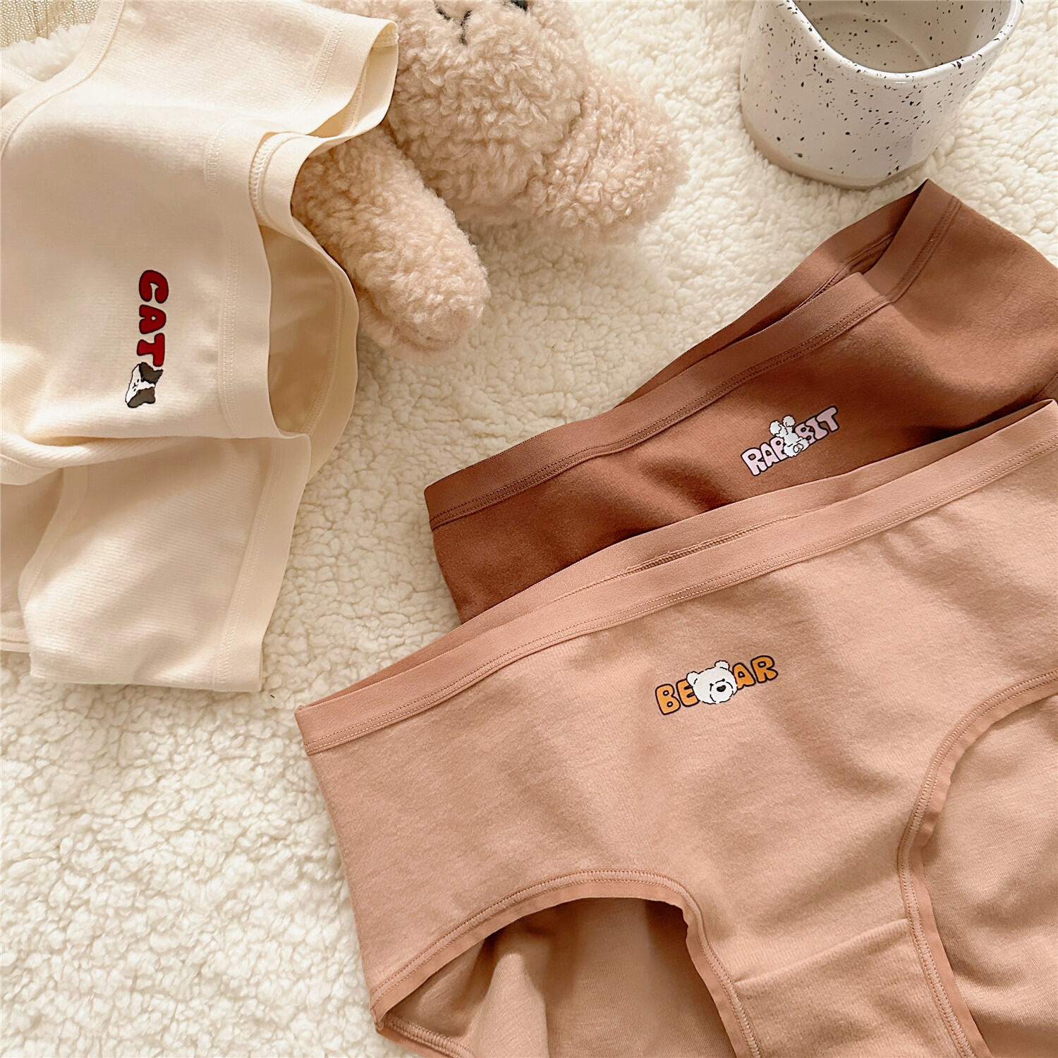 Cat and Dog ~ Adorable Pet Mid-Rise Women's Underwear Earth Color Briefs Textured Cartoon Underwear Female plus Size