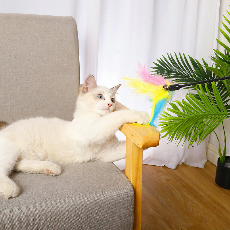 This toy can train cat's natural instincts,keep your cat act nimble. With three small beads, little bells will sound, a shake rang, attracting the attention of cats, kittens favorite. Improve affection between you and your pet Material: Plush, Tinkle Bell Features: Plush, Comfortable Color: Random Package Includes: 1 x Feather Teaser Cat Toy - Please allow a slight difference between the size above and the actual item due to manual measurement. - Due to the difference between different monitors, there could be a little color difference acceptable, please kindly note.