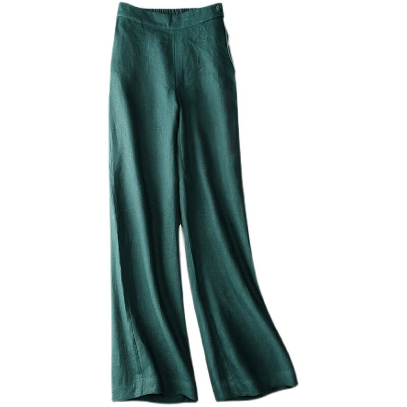 Foreign Trade France Single Women's Clothing Clearance Brand Solid Color Linen Straight Wide Leg Pants Women's Casual Slim Looking Cotton Linen Long Pants