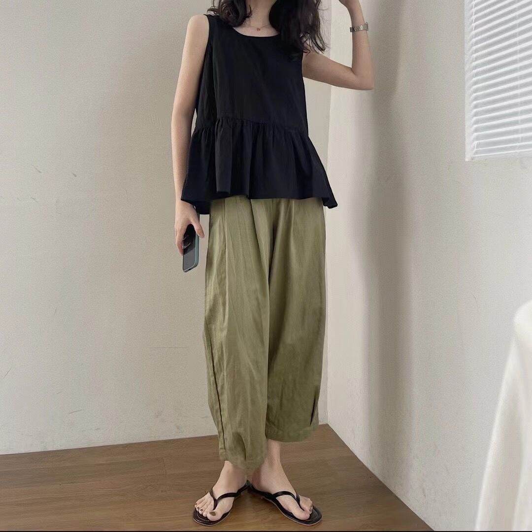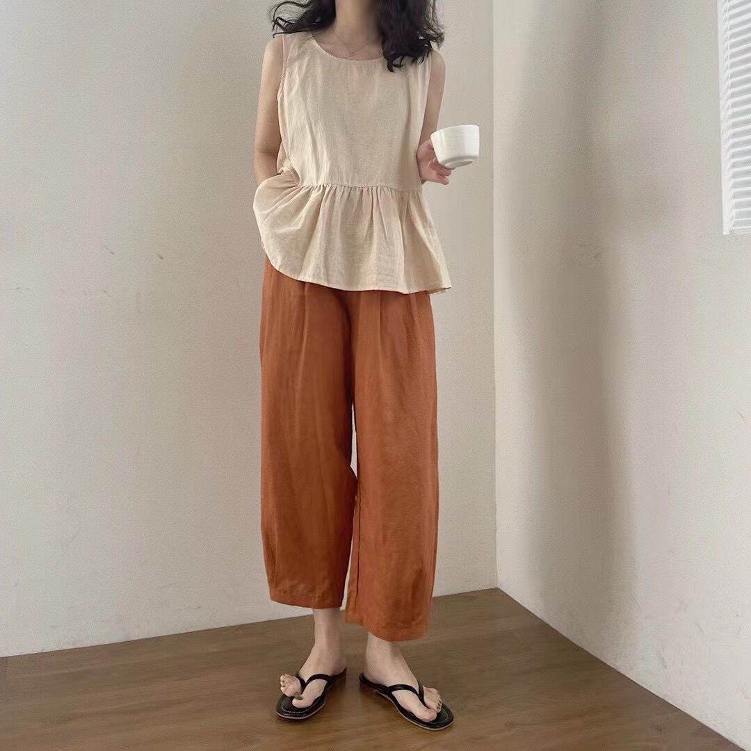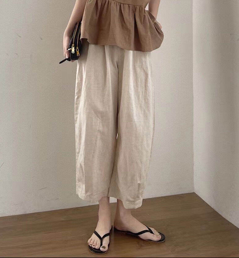 Clearance Sale Missing ~ Counter Withdraw Big Brand Cut-off Label Women's Japanese Style Cotton Linen Cropped Wide-Leg Pants Casual Linen Harem Pants