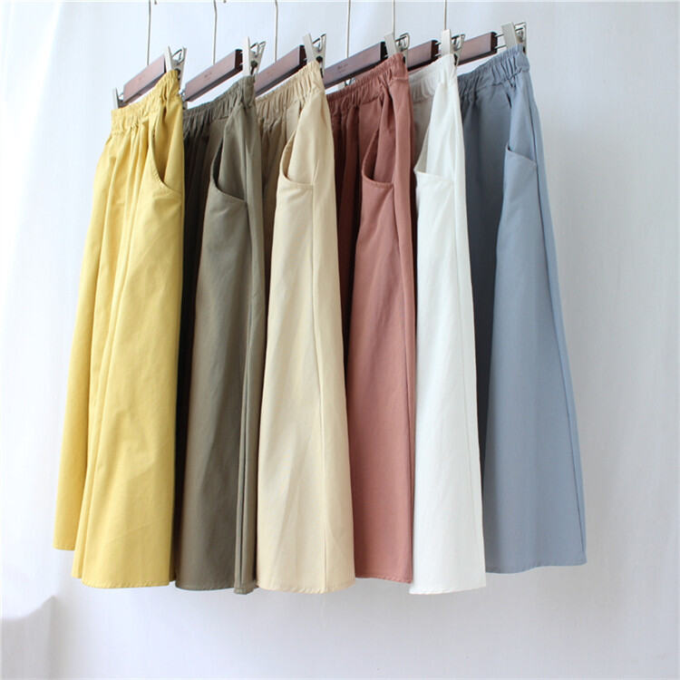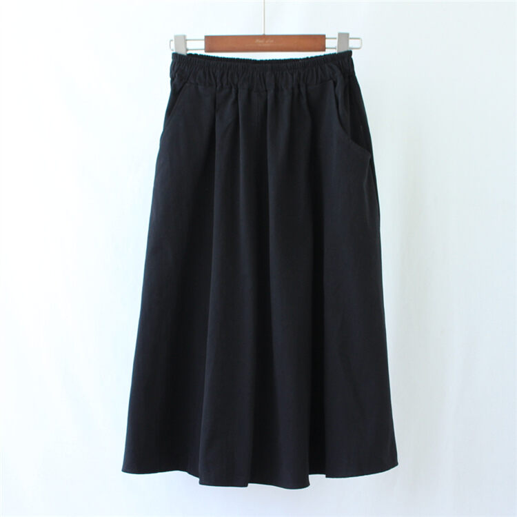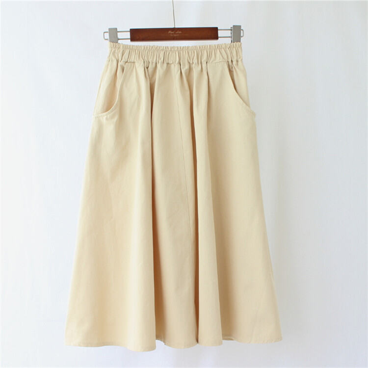 A- line Large Hem Mid Length Long Length Cotton Skirt Women's Autumn Mori Style Umbrella Skirt Solid Color Student Art Pocket Skirt Large Size