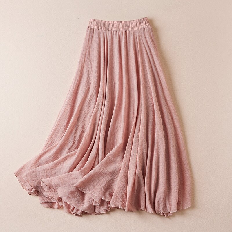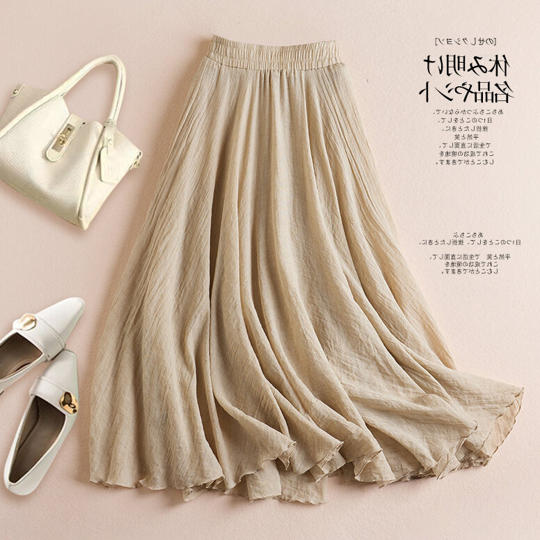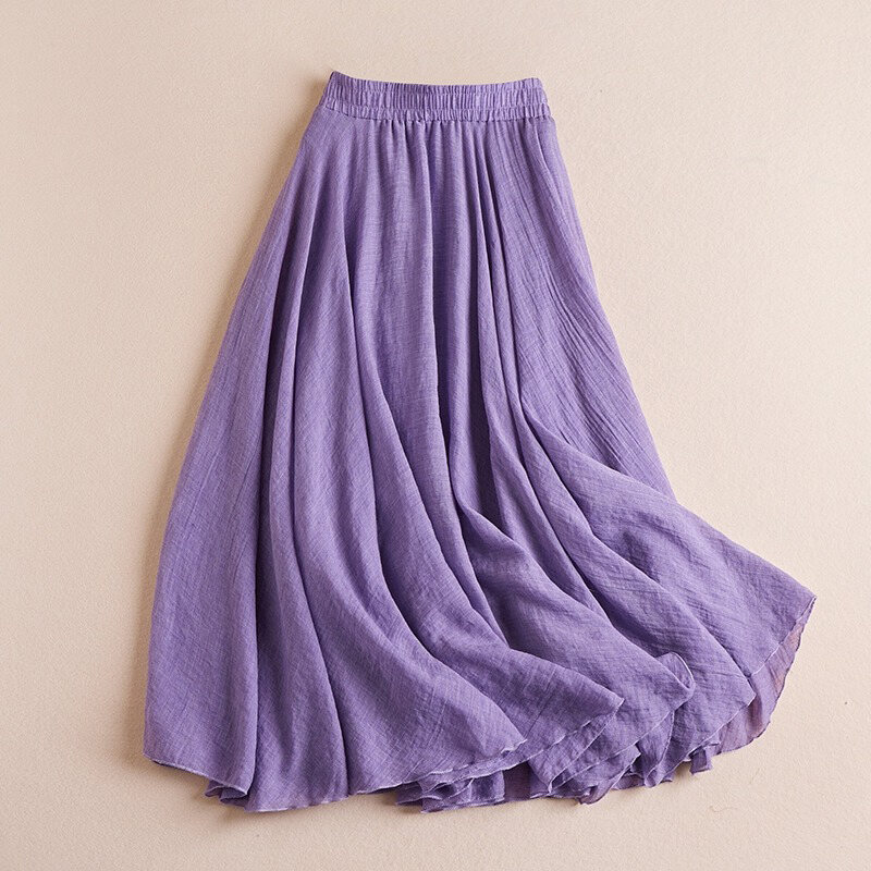 Plus Size Women's Cotton and Linen Solid Skirt Summer 2023 New Arrival High Waist Figure Flattering Flowy A- line Large Hem Long Skirt