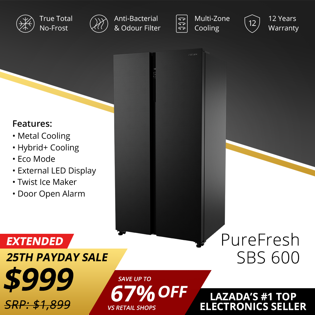 PRISM+ PureFresh SBS 600 | 590L Side By Side Refrigerator | True Total No-Frost | Convertible Zone | Anti-Odour Filter| Eco Mode | Super Freeze | External LED Display [Delivers in Late April to Early