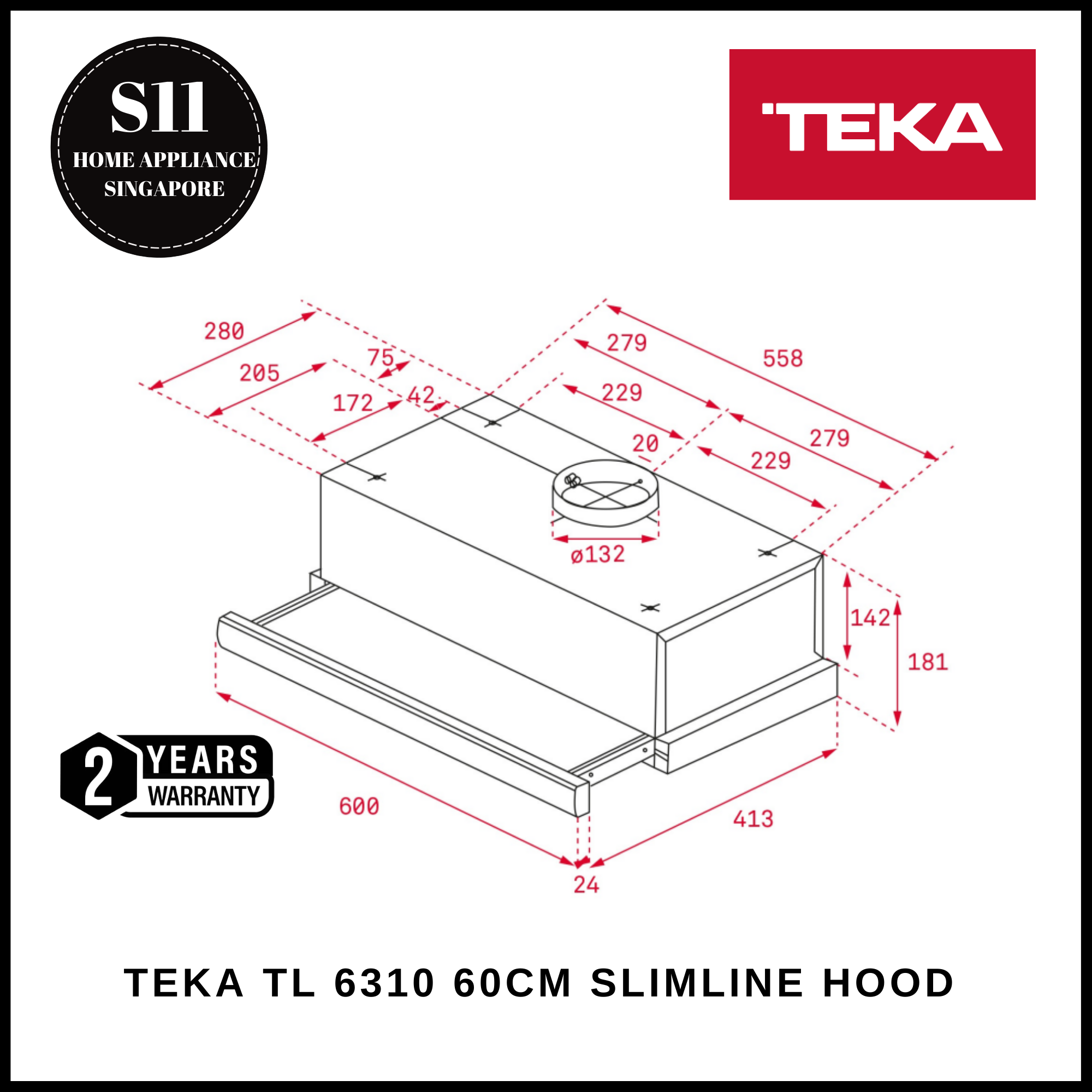 • Product depth (mm): 280/413