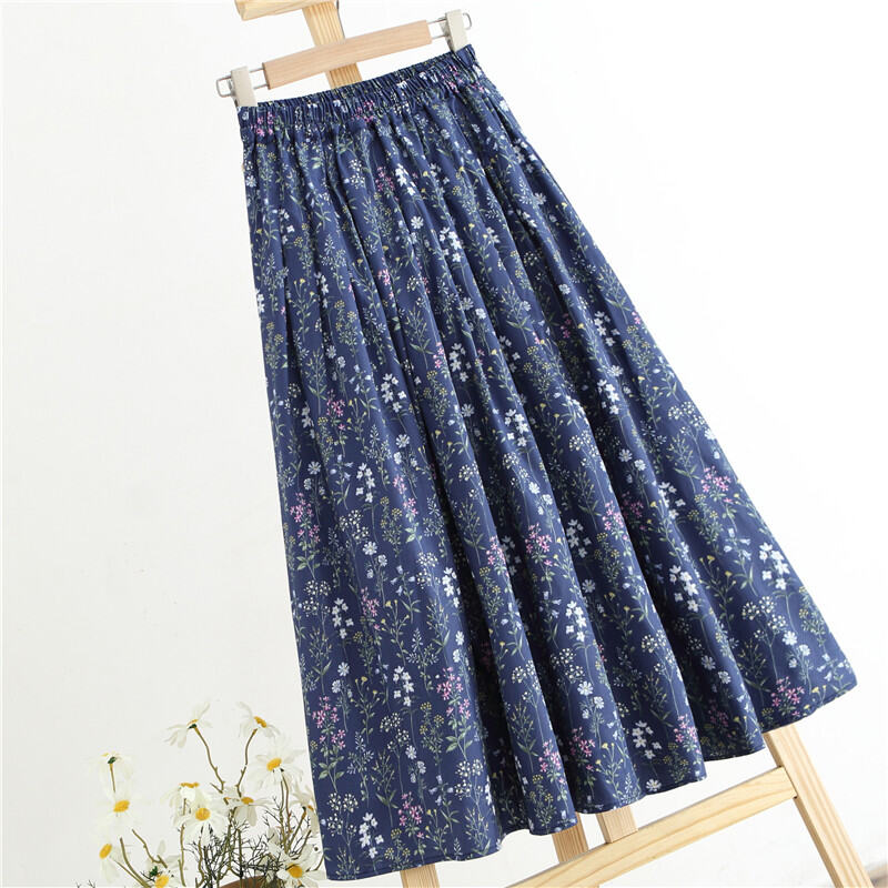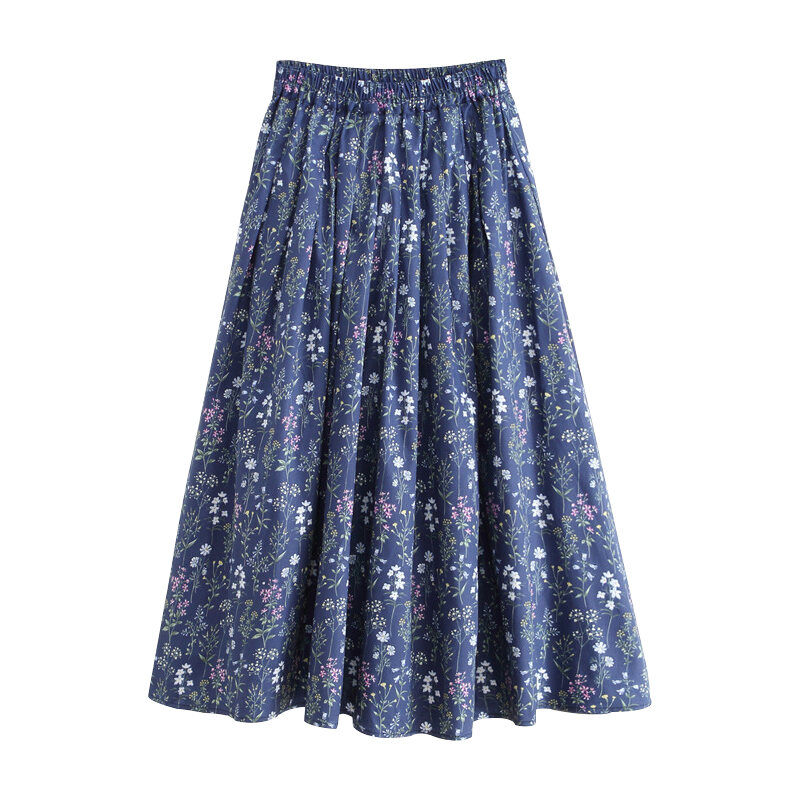 2024 Early Spring and Summer New Arrival Artsy Vintage Umbrella Skirt A- Line Skirt Female High Waist Long Dress Cotton and Linen Floral