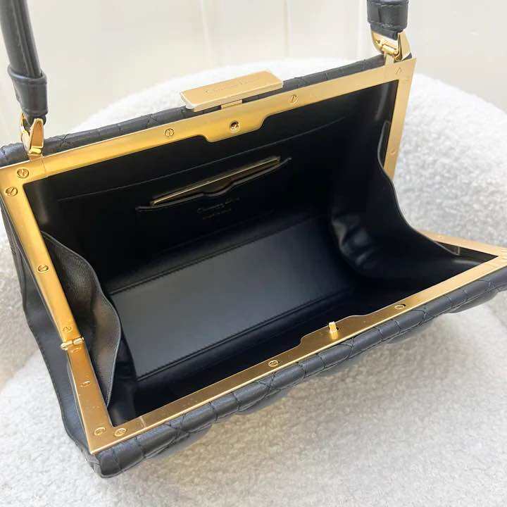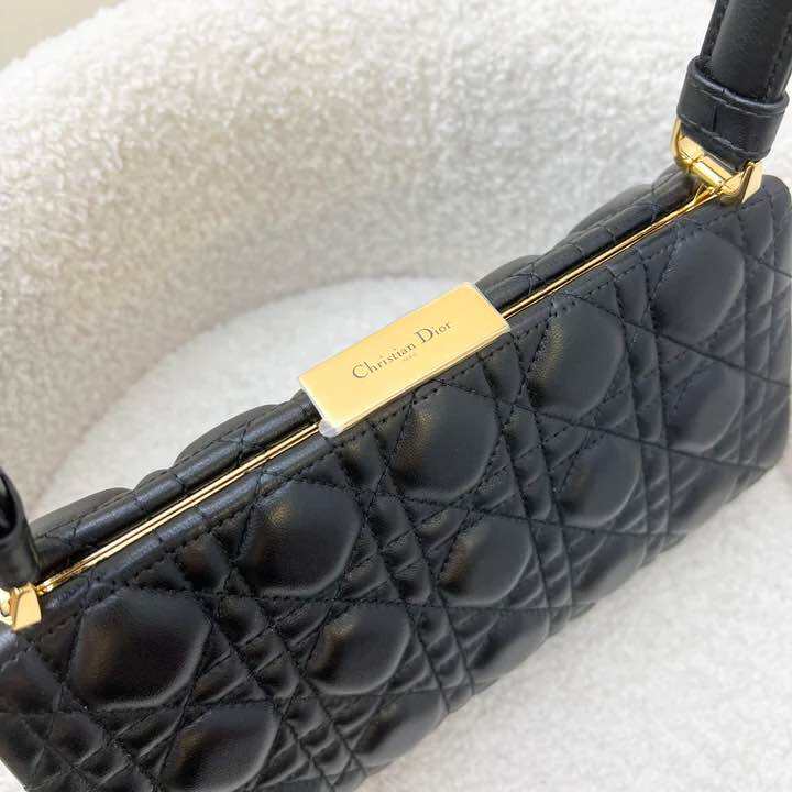 (Brand new) Dior Limited Edition Top Handle Shoulder Bag in Black Quilted Lambskin and GHW