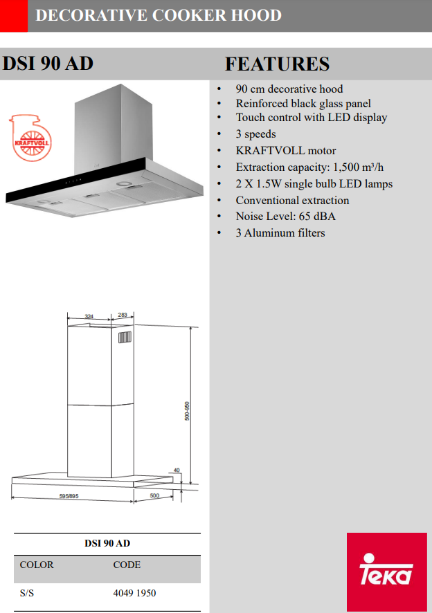 TEKA DSI 90 90CM CHIMNEY HOOD WITH TOUCH CONTROL