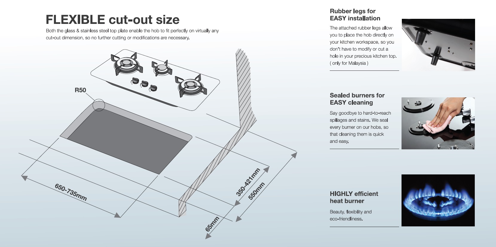 RINNAI RB-7303S-GBSM 3 BURNER TEMPERED GLASS BUILT-IN GAS HOB - READY STOCKS & DELIVER IN 3 DAYS