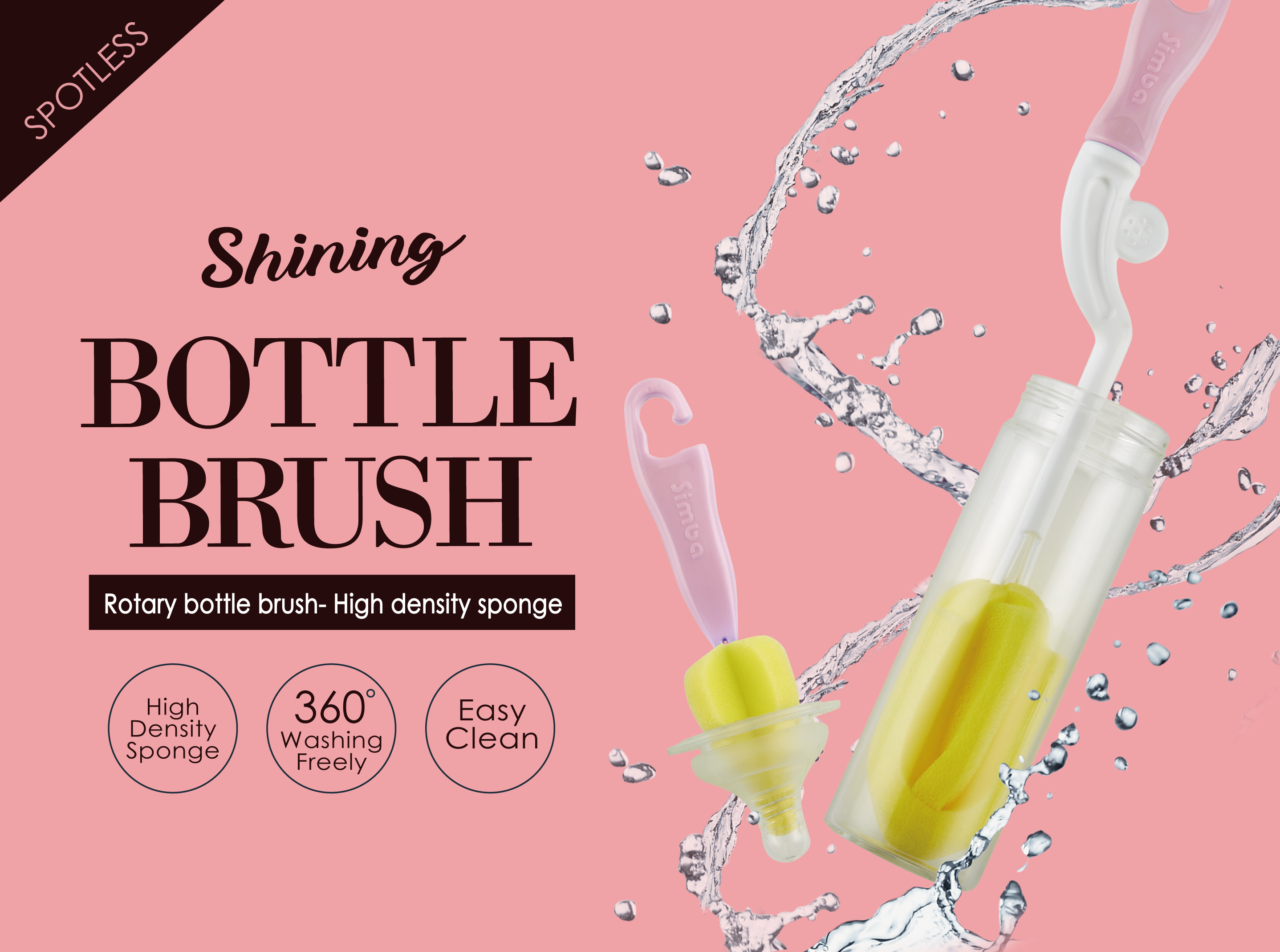 Simba Rotary Bottle Sponge Brush (Blue/Pink)