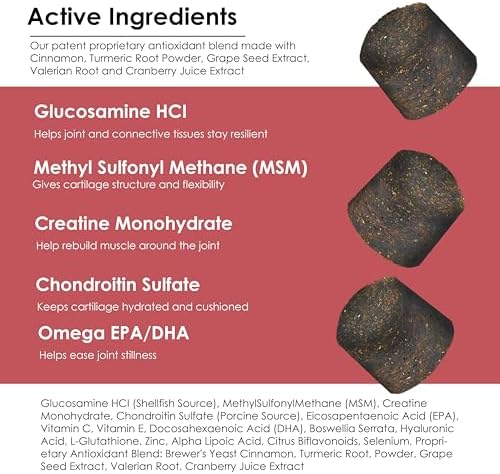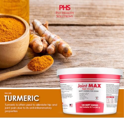 OUR PROPRIETARY BLEND OF INGREDIENTS IS BACKED BY SCIENCE: Joint MAX is a quality hip & joint supplement for dogs at any stage in life. Our soft chews help ease everyday joint stiffness, arthritis pain and support joint structure. Joint MAX offers a convenient and tasty way to provide essential joint care. ADVANCED CARE FORMULA - Joint MAX TS contains a powerful mobility-supporting formula that includes Glucosamine, Chondroitin, Omega-3, Creatine, EPA + DHA and Turmeric. Our formula helps reduce oxidative stress, targets lubrication, cushioning of tissues and provides arthritis pain relief. EASY TO USE - Say goodbye to the struggle of giving your dog supplements! Joint MAX supplements have a delicious liver flavor, making them highly palatable and encouraging compliance. Joint MAX has been shown to provide positive joint mobility responses in as little as 10 days. RELIEF FROM INFLAMMATION - For active dogs or once active dogs that still love to play, Joint MAX Triple Strength uses natural turmeric root to reduce inflammation and relieve joint pain. Your pet will finally rest comfortably after a rough day at the dog park with our super joint enhancer. PERFECT FOR DOGS AT ANY AGE or SIZE - Younger or senior dogs, large dogs and every dog in-between; prevention for pets that have yet to show signs or dogs that have a difficult time moving. Expect big improvement in their flexibility and mobility.See less #8,032 in Pet Supplies ( ) #102 in