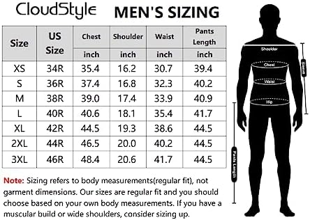 Size reference: XS≈34R, S≈36R, M≈38R, L≈40R, XL≈42R, XXL≈44R, 3XL≈46R.Please kindly look at our Cloudstyle size suggestion in Picture 2 and the detail size table in Picture 3. PLEASE NOT look at the Amazon size chart. Over 264lbs are not recommended to buy Slim Fit - Fitted. [Item sold as set, mix and match sizes are not available. And please pack all the original items you received with the return package before send back when come to the return or replacement issue] Bottom: Flat Front Free Length Pants Come with Extended Waist Strap, Slanted Side Pockets Tops: Notched Lapel, 4 Sleeve Buttons, 2 Flap Pocket, 2 Inner Pockets With 2 Coin Pockets Vest: 4 Buttons Vest with Back Adjustable Belt #43,515 in Clothing, Shoes & Jewelry ( ) #56 in