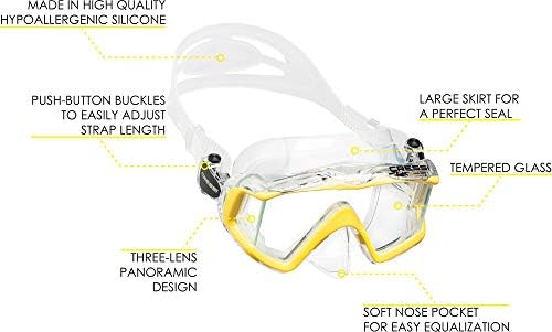A great equipment ready to use to enjoy snorkeling or scuba diving without any trouble. The panoramic masks have been designed to give you great visibility, fit, durability, and comfort. Mask made of hypoallergenic soft silicone to ensure a perfect sealing. Soft nose pocket for easy equalization. Lenses in tempered glass for safety and easy-to-clean. Push-button buckles to easily adjust strap length. The Supernova Dry is the first submersible dry top snorkel of Cressi. Great for youth to adults, anyone who wants to feel that much safer when they are snorkeling. The dry top valve eliminates water entry when submerged. A soft silicone mouthpiece reduced drastically jaw fatigue. Bottom purge valve to blow out the remaining water. The Pano 3 & Supernova Dry is designed in Italy by Cressi and made in Taiwan. Cressi has been an Italian brand pioneer in scuba diving, snorkeling, and swimming equipment since 1946.