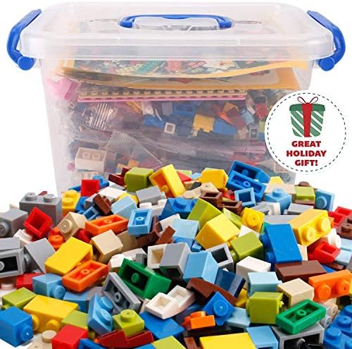 Liberty Imports 1000 PCS Bucket of Mini Building Bricks Playset with Base Plates, 16 Color Classic and Pastel Mix Blocks Set in Carrying Case, Tight Fit and Compatible with All Major Brands