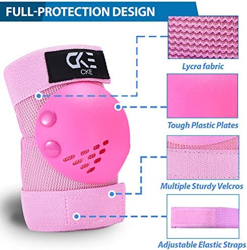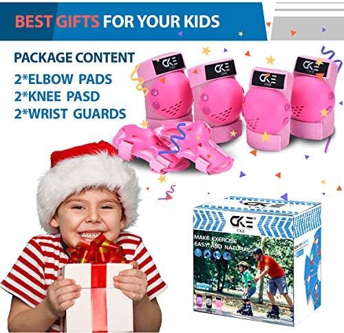 【2-7 Year Old Kids Protective Gear Set】The knee elbow pads with wirst guards are designed for 2-7 year old kids sports saftey protection especially for ice and roller cycling skating, Skateboard Hoverboard, biking, cycling, skating, rolling, ATV, BMX and other extrem sports. 【3 in 1 Kids Protective pads 】Kids protective pads provided with 1 storage box including 2 x elbow pad,2 x knee pad,2 x wrist pad, you can carry the kids protective gear set with you for bike, skateboard, skating, cycling, scooter, rollerblade. 【Durable & Comfortable Kids Knee Pads】kids protective gear set has a high hardness PVC shell, thickened soft sponge, durable and tough material with breathable liner to against external pressure. 【Rofessional and Comfortable Kids Pads Set 】Kids knee pads elbow pads wrist guards has djustable elastic straps for secure, the thickening desgin will be good protection during bike, skateboard, skating, cycling, scooter, rollerblade sport. 【Great Gift for Kids】The kids knee pads are fit for 2-7 years old child. This is the perfect gift for children on birthday, Thanksgiving and Christmas. Have the full protection to allow your child to be more confidence during practice.