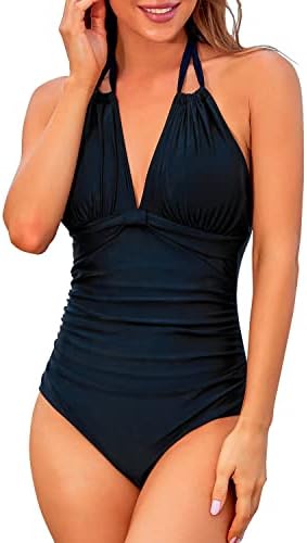 Tempt Me Women One Piece Swimsuits Tummy Control Halter Bathing Suits Sexy Ruched Slimming Swimwear