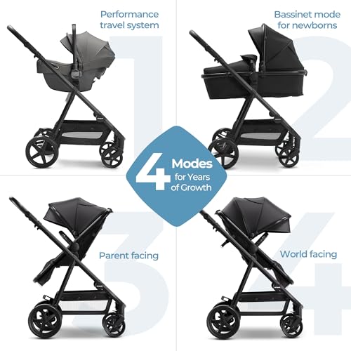 Mompush Meteor 2 Baby Stroller 2-in-1 with Bassinet Mode, Compatible with Infant Car Seat, Adapter Included - Stable Bassinet Stroller Combo, Full-Size Baby Strollers for Family Outings