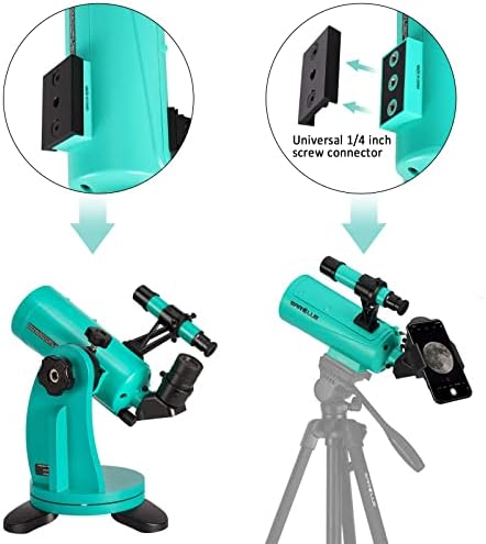 The mak telescope stands out from other beginner level telescopes by providing sharp and crystal clear views with almost no chromatic aberrations. You can enjoy viewing both distant celestial objects including the moon, Saturn, Jupiter, and vivid terrestrial targets in nature. This tabletop telescope is an upgraded version of Maksutov Planet Mate 60 Telescope. Simple navigation and no need to align make it extremely easy to use. The Dobsonian mount enables vibration free viewing, and with the finderscope, aiming and tracking your target is a breeze. Included 20mm eyepiece renders 37.5X power. The telescope is small but powerful for its size, having 750mm focal length in a small 200mm tube. You can use other 1.25'' eyepiece to change magnification. The telescope features a detachable lid, which reveals the internal structure of the tube and how it works inside. It can be a great astronomical educational kit. And the included universal phone mount helps you easily capture the moment and share with your loved ones. If you're not happy with our mak60 telescope or need professional suggestions, contact us anytime and our customer care will help you. And you will also receive 1-year hassel-free warranty for the telescope.
