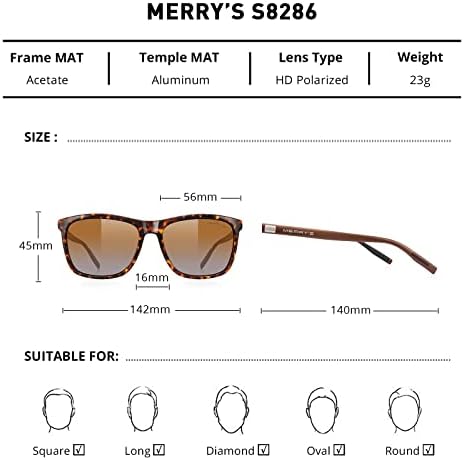 POLARIZED LENS - Polarized sunglasses reduce glare reflected off of roads, bodies of water, snow, and other horizontal surfaces. Restore true color, eliminate reflected light and scattered light and protect eyes perfectly. Polarized sunglasses cut glare and haze so your eyes are more comfortable and you can see better. STYLE - New brand design,it is suitable for any face, show your unique and high-end taste. SUITABLE - The perfect choice for taking selfies,shopping,houseboat,driving,running,fishing,climbing,trekking and business or other outdoor activities enthusiasts. SIZE - Lens Height:45MM(1.77Inches)--Lens Width:56MM(2.20Inches)--Arm:140MM(5.51Inches)--Bridge:16MM(0.63Inches)--Frame Length:142MM(5.59Inches). GIFT IDEAS PACKAGE - Sunglasses*1, Leather glasses case*1, Glasses kit*1(including microfiber glasses cleaning cloth and instruction book), Paper Box*1. It is also a gift packaged ready, making it a wonderful yet practical gift idea for friends and family! #1,562 in Clothing, Shoes & Jewelry ( ) #10 in