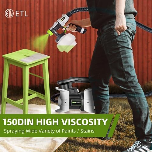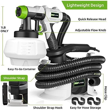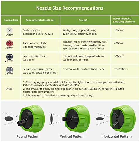 【High Speed HVLP Spray Paint Gun】PHALANX 700W spray painter is equipped with a high speed motor and powerful turbo fan, which makes it paint faster, smoother and even, greatly improving the painting quality. 【150DIN High Viscosity】This electric paint gun adopts 150DIN viscosity, making it suitable for most paints. This powerful spray-painting gun can ensure that you can finish all kinds of painting projects quickly and smoothly. Great for home improvement and DIY lovers. 【Lightweight Design & 10FT Flexible Air Hose】The body separation design makes the spray gun only weigh 1LB, which greatly relieves the pressure on arm and hand. Lengthened hose makes the painting range up to 780FT². Ideal for beginners. 【4 Nozzles & 3 Patterns】4 nozzles (1.5mm/2.0mm/2.5mm/3.0mm) can meet different painting requirements! By adjusting the air cup, 3 painting patterns can be obtained to finish your project. Air flow knob can adjust the flow to realize accurate output and save materials. 【ETL Certified & Warranty】It has ETL certification from the authoritative organization to ensure product quality and safety. And it also has 30 days UNCONDITIONAL return. Any questions, contact [service@phalanxtools.com] or call me at (+1)8772199866.