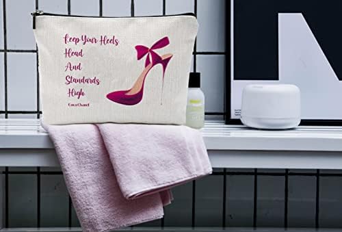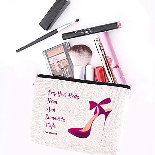 Coco Chanel Quotes Makeup Bag,Fashion Gift for Gilrs, Keep Your Heels Head Standards High Cosmetic Bag Waterproof Linen Travel Accessories for Women, Toiletry Bag Pencil Case for Daughter